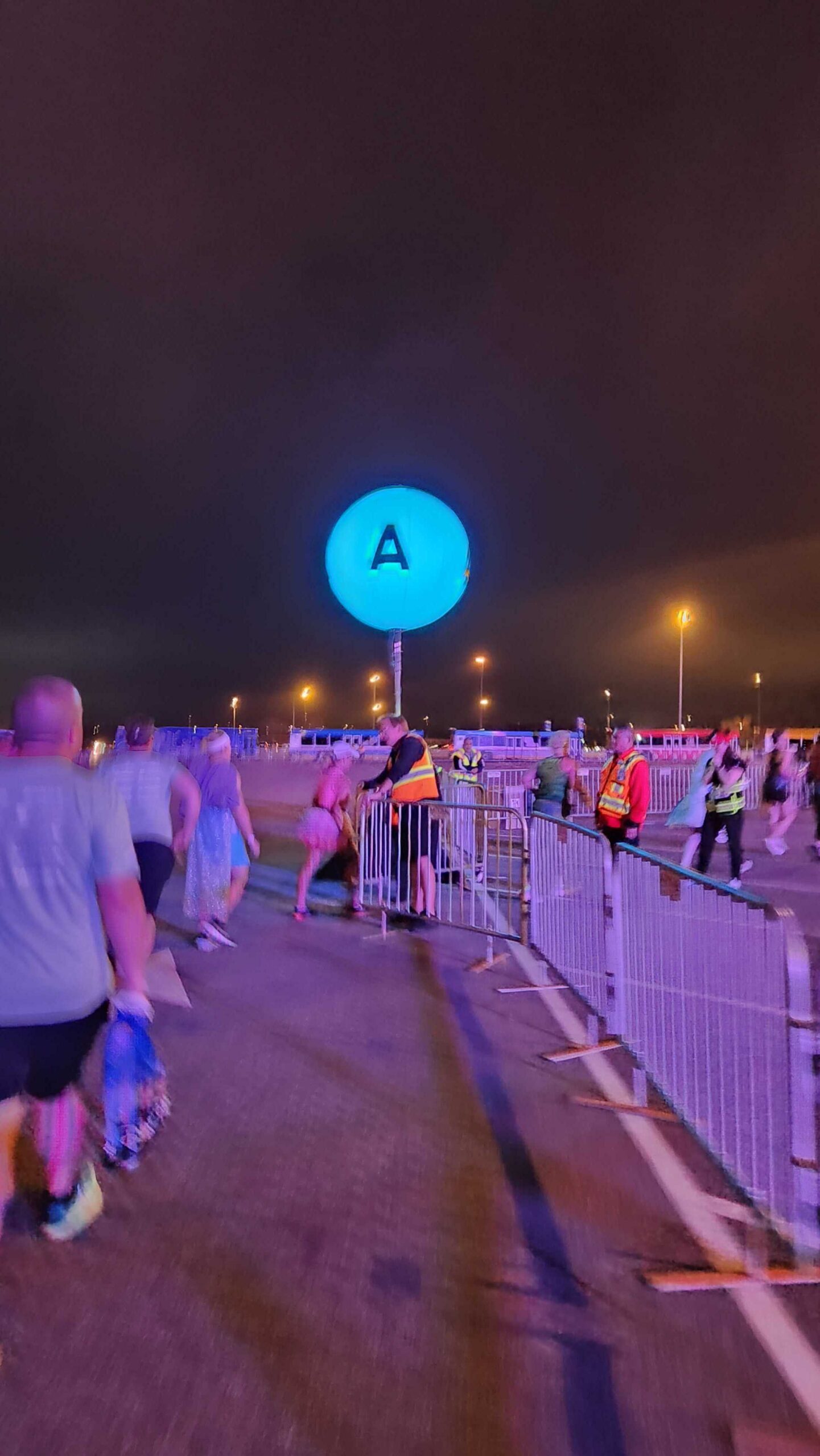 Saturday morning follows almost the exact same schedule as Friday. Buses start running at 3:00 a.m., corrals open at 3:45 (supposedly – but they really opened at 3:34 am), and the race officially begins at 5:00. By the second day, the timing feels slightly less shocking, but the early alarm is still very real. On this particular morning, the added complication was weather. Rain was falling steadily right up until the race began, which meant a lot of damp runners and walkers standing around in ponchos waiting for the start.