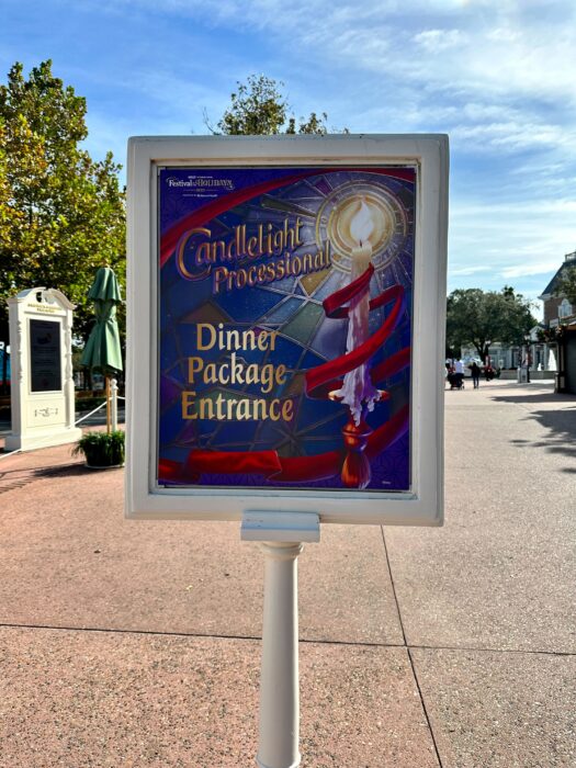 If you want to get more information on what is included in the dining package we’re talking about in this post, check out all of the details here. The biggest inclusion is guaranteed seating for a Candlelight Processional showing that night! You can avoid the standby line and instead get admitted to the theater early along with other dining package guests.