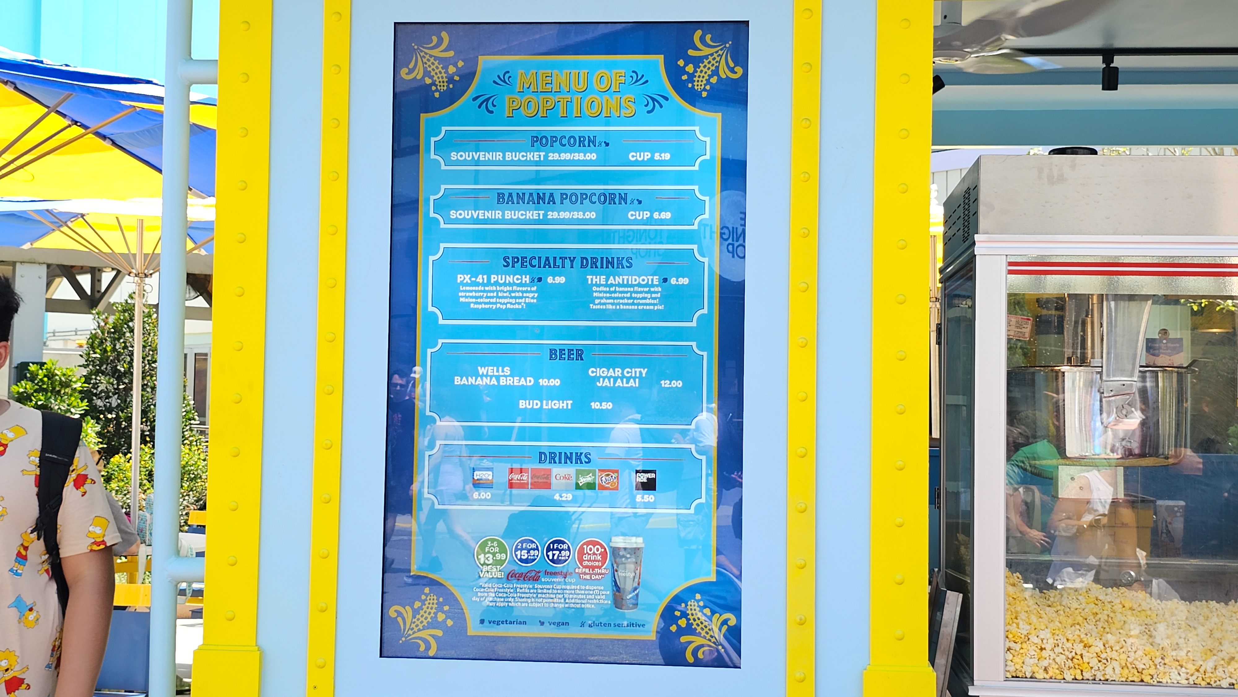 Next door the new Pop-A-Nana, Freeze Ray Pops, and Bake My Day snack stands are also now open. Pop-A-Nana serves flavored popcorn, yes including banana flavored, and Freeze Ray Pops sell e-ticket popsicles themed to the franchise. Bake My Day not only sells freshly baked goods they also are a full snack shop with pre-packaged sweets and other items to go.