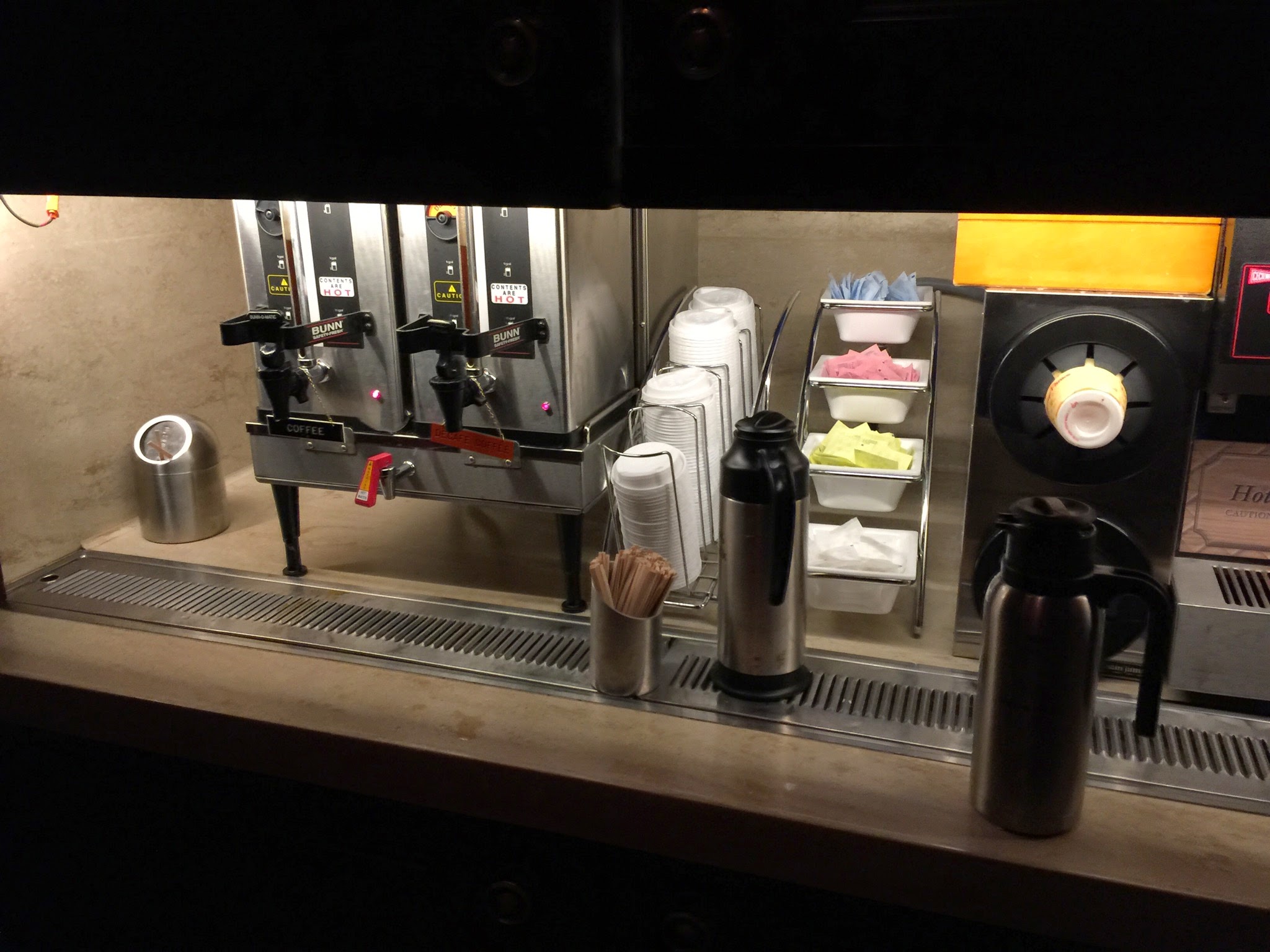 Speaking of wine, there are sadly no mimosas or bloody marys served here. Every meal does include your choice of beverage, but here’s a trick: bottled drinks like juice and Perrier are single-serve and delivered with your meal, but fountain sodas and hot drinks are self-service and unlimited.