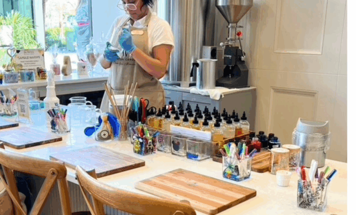 And Now We Wait. Your candle will need around 40 – 45 minutes to cool and set. Have a stroll around Springs and return to your custom art!
