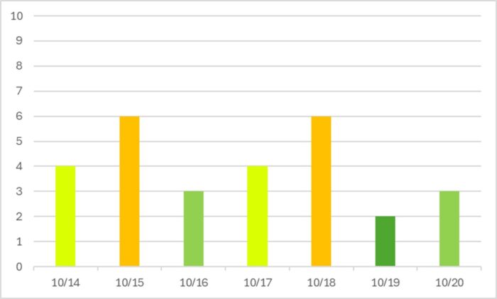 It’s fall and we’ve still got orange bars showing up thanks to fall breaks and the resulting “crowds” (clearly when we’re topping out at crowd level 6, it’s not ALL that crowded. But it’s much different than the numbers we were seeing this summer and through September.