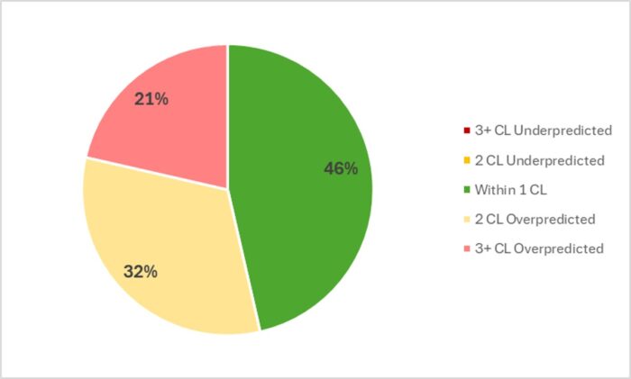 Each week, I give you a very transparent look into how the TouringPlans crowd level predictions performed. Each day at each park is one data point, so each week we have 28 different crowd level predictions to evaluate. Any time a prediction is within one or two crowd levels, things won’t really “feel” much different than what was predicted. Being off by 3 or more crowd levels is where you might feel that difference in wait times throughout the day.