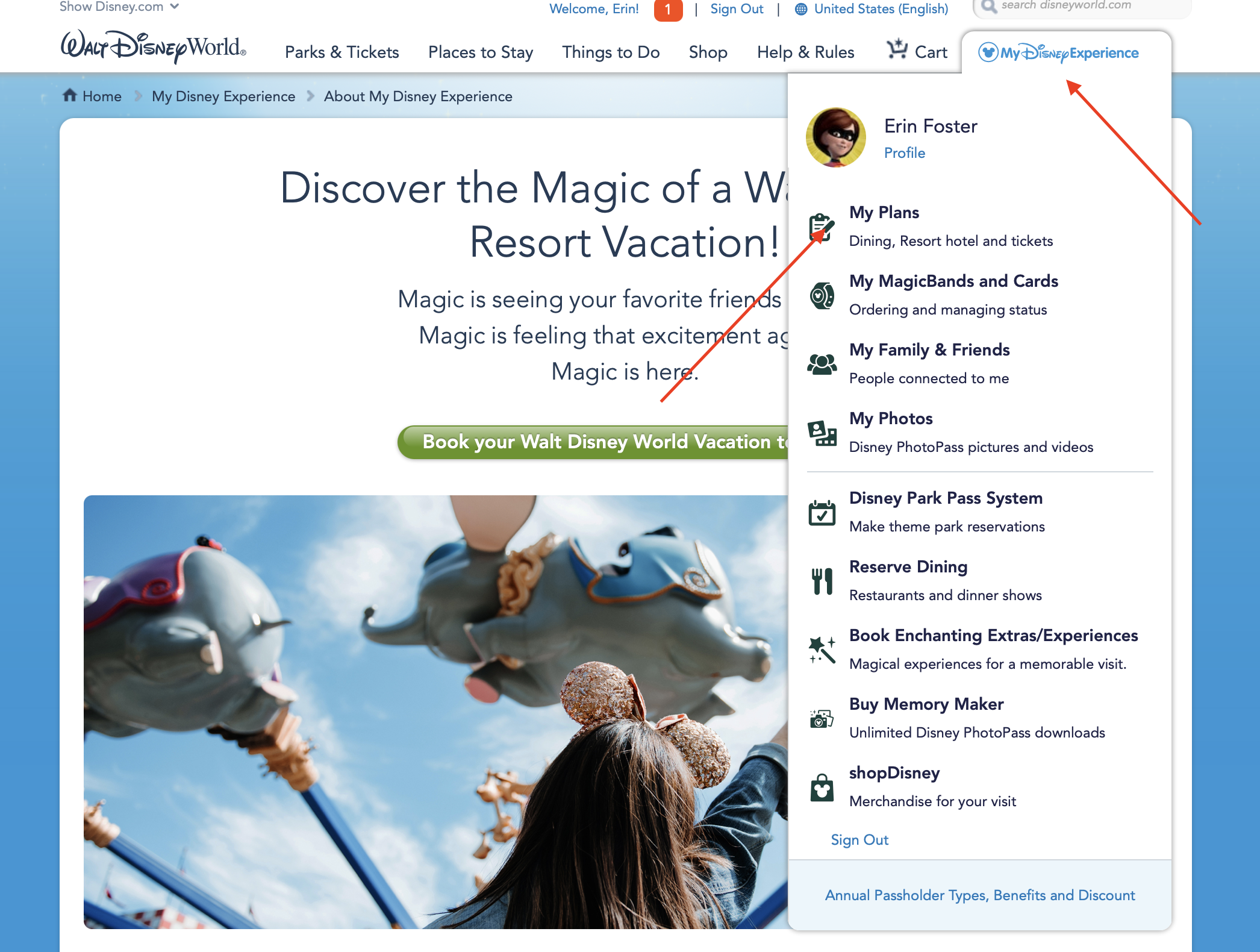 Online check-in can be found on the My Disney Experience tab on the Disney World website. If you’re less than 60 days out from your arrival date, you should see the option.