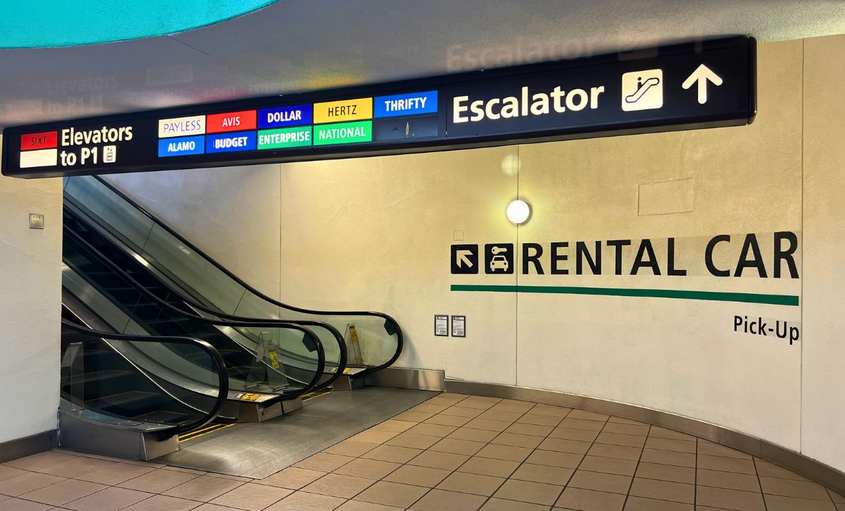 Terminals A, B, and C each have rental car garages attached to the terminal. If you’re renting from Alamo, Avis, Budget, Dollar, Enterprise, Hertz, National, Payless, Sixt, or Thrifty, you can walk out of the terminal and across to the garage.