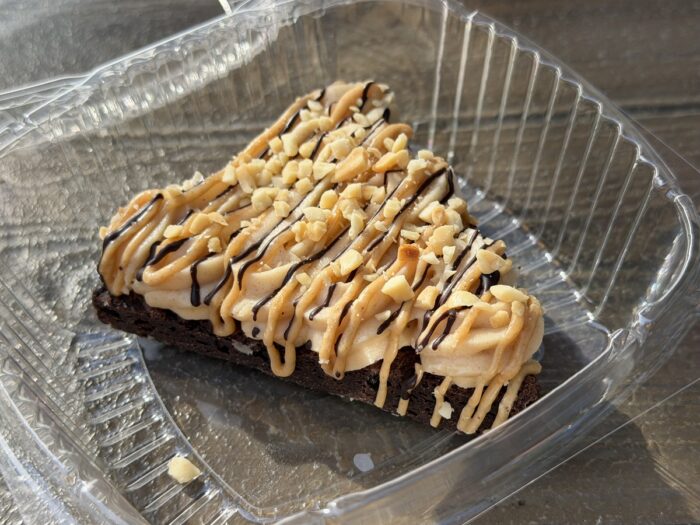 I’m all for complex and inventive desserts, but sometimes something as simple as a slab of peanut butter on top of a brownie is just as delightful. The Peanut Butter Brownie Slice ($7.99) is topped with peanut butter mousse, melted peanut butter and chocolate.