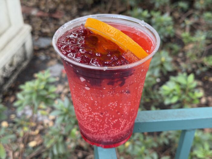 Wash everything down with a staple of Disneyland quick service restaurant. That of course would be an ultra sweet beverage. Tiana Punch is made up of Hi-C fruit punch, Sprite, raspberry syrup and macerated berries for $7.29. The fruit punch and Sprite go well together but it’s a total sugar bomb.