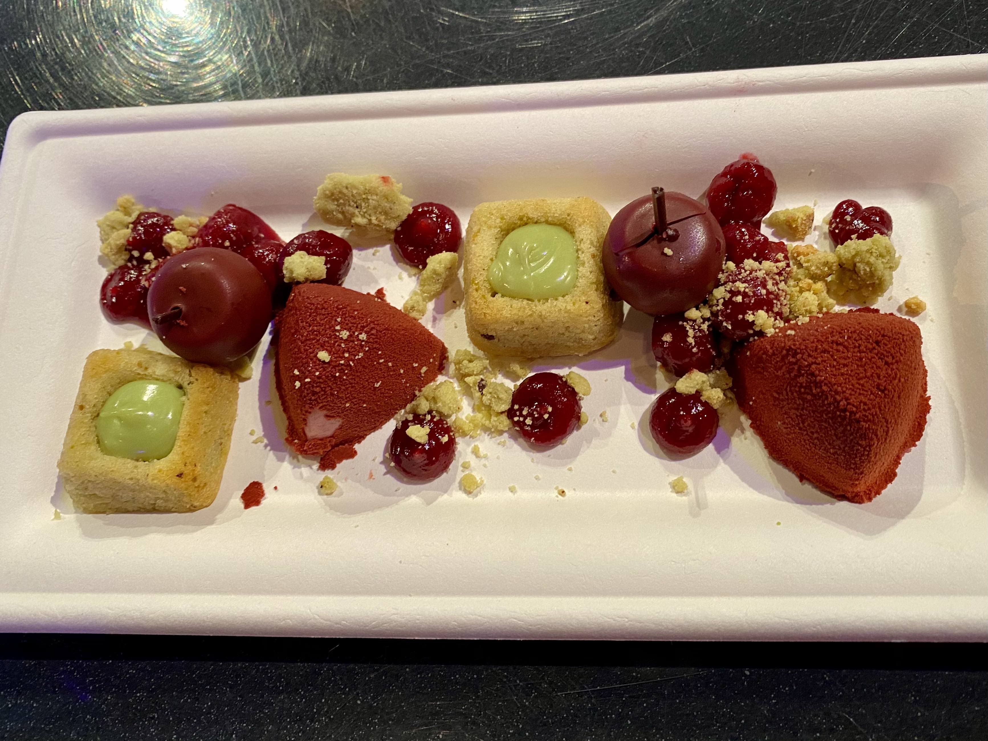 Pistachio Cake with Cherry Mousse and Morello Cherries – $5.50