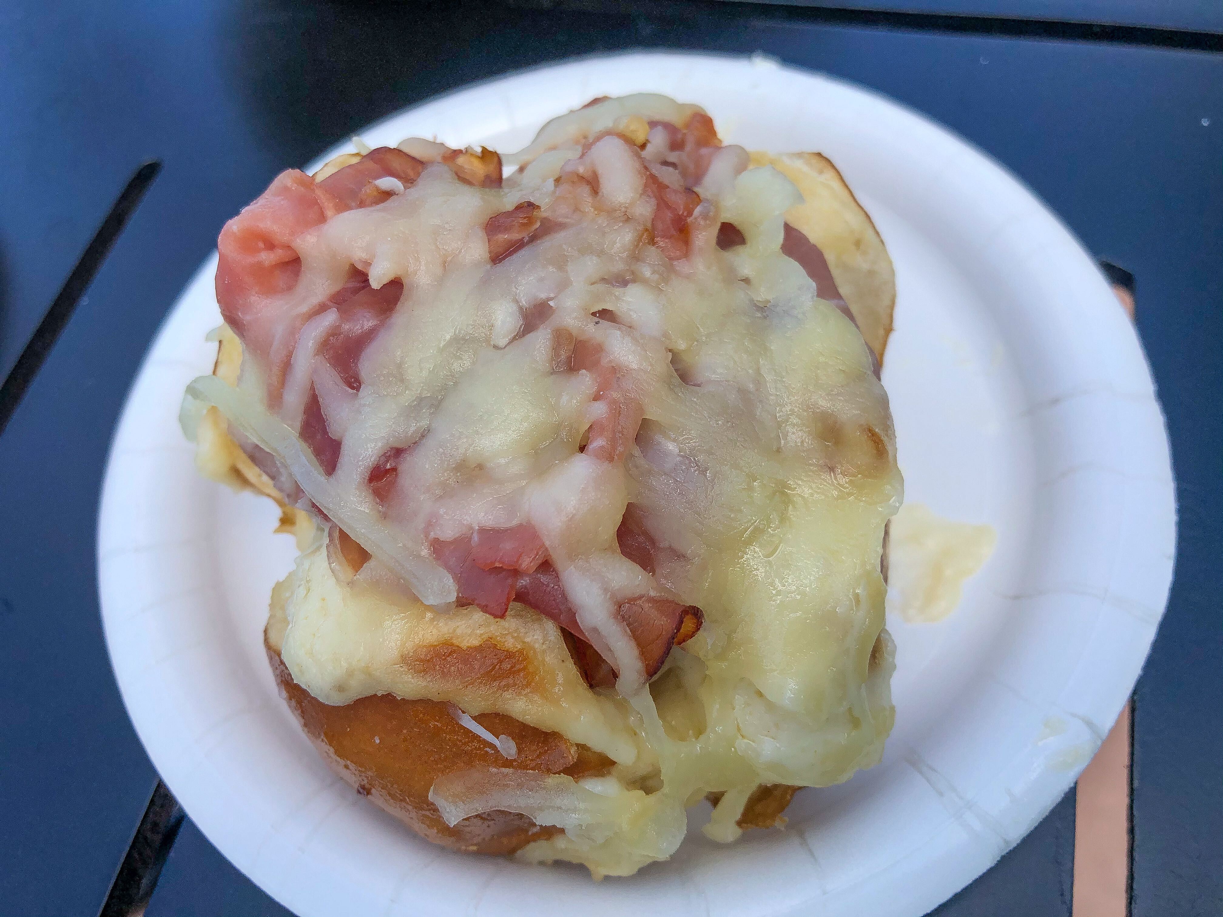 - Toasted Pretzel Bread Topped with Black Forest Ham and Melted Gruyère Cheese – $5.50