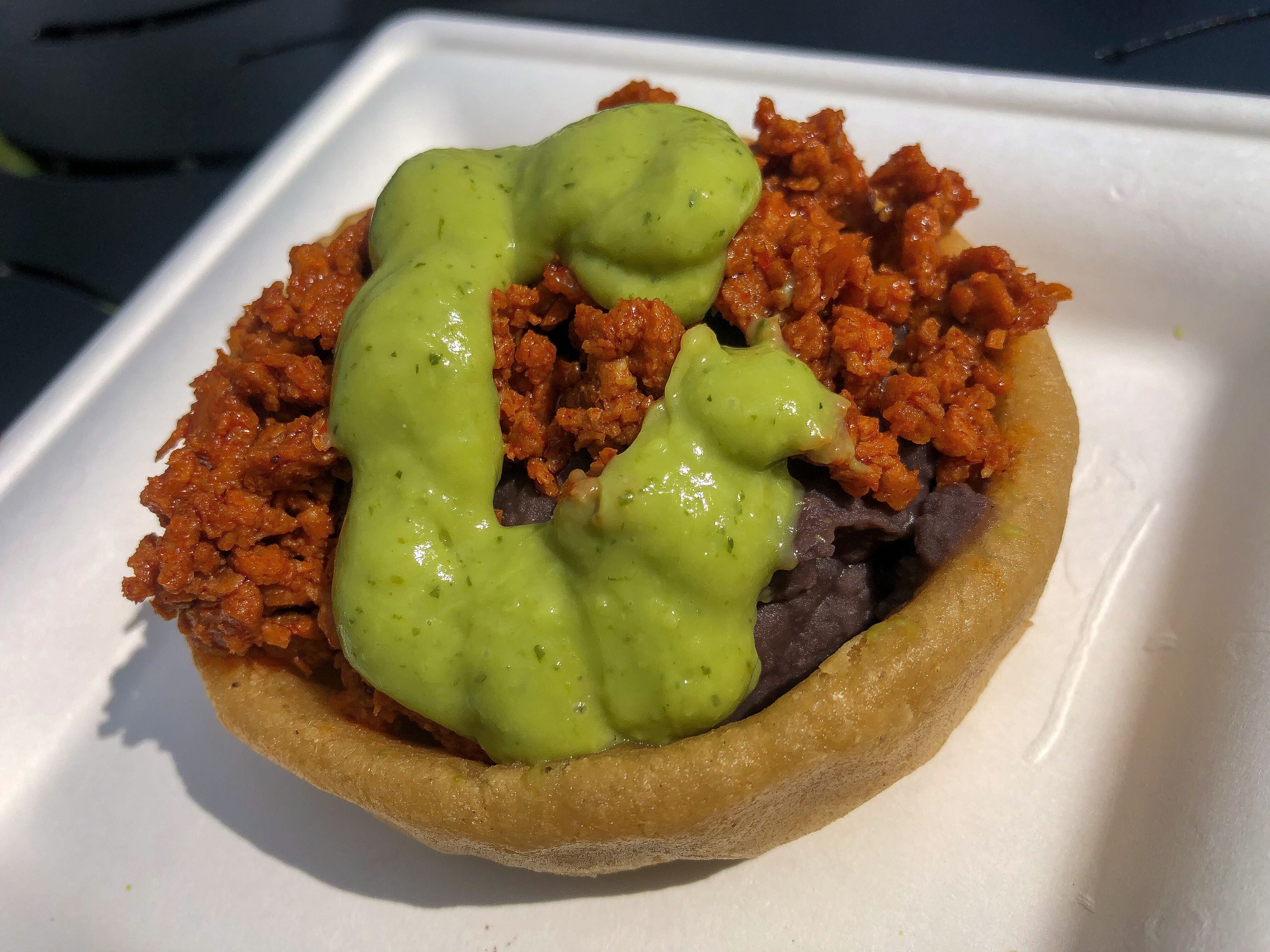 - Sope de Chorizo: Plant-Based Ground Chorizo on Fried Corn Dough with Black Beans and Avocado Mousse – $6.75