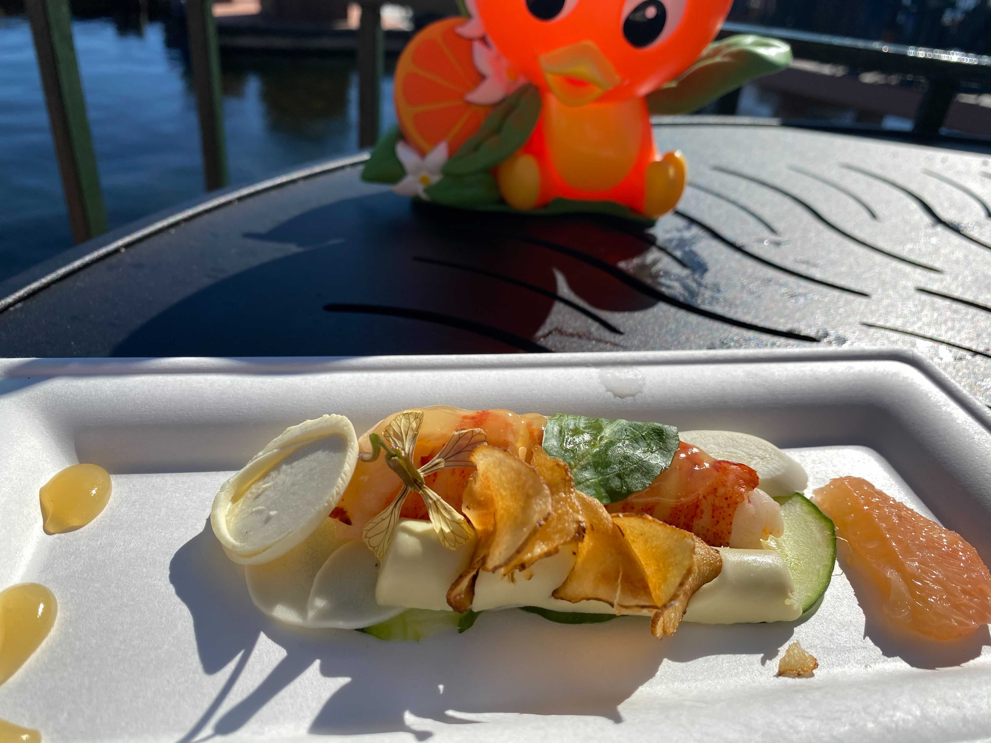- Meyer Lemon-Poached Lobster Salad with Grapefruit-Rosé Vinaigrette, Yuzu-Marinated Hearts of Palm, and Avocado-Yuzu Panna Cotta – $8.25