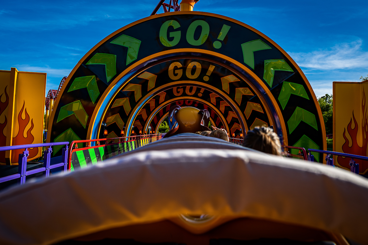 The second half of the ride has a different feel from the first. Dave Minichiello, then the Executive Creative Director of Walt Disney Imagineering, said: “The first half of the ride is many swirls, turns, and dips, and after the second launch comes a drop and camelback humps — as if you were playing with a Slinky Dog toy.”