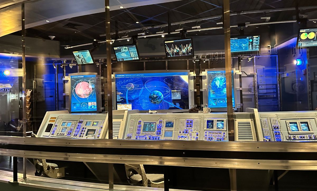 ⭐ When Mission: SPACE replaced the popular attraction Horizons, the Imagineers planted several tributes in the queue area. You can find the Horizons logo in the rotating “gravity wheel.” The name “Brava Centauri” (from Horizons) appears during the safety briefing and on some signage in the gift shop.
