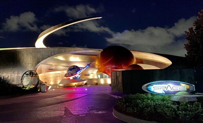 Everything about World Discovery is designed to look sleek and futuristic. The architecture is laid out so that the buildings, attractions, signage, lighting, and landscaping all create and tell one coherent story focused on the future. You’ll see styling that is suggestive of movement, including lots of arcs and sweeping lines. Metals and reflective surfaces also feature prominently. And in some places, you may even find nods to classic science fiction and its vision of what the future could look like.