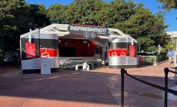 Outside of Mission: SPACE, the Planetary Plaza courtyard has been around for a while and features large models of our solar system’s planets. It’s meant to suggest you’re around an actual launch site. The area outside Guardians of the Galaxy: Cosmic Rewind is newer and sleeker, with the Starblaster Ship out front acting as the wienie for this world. The Test Track 3.0 building is more industrial with lots of metal and glass. Taken together, these designs immediately signal to guests that they have entered a land that’s a vision of our possible future, conveying the excitement of possibility.