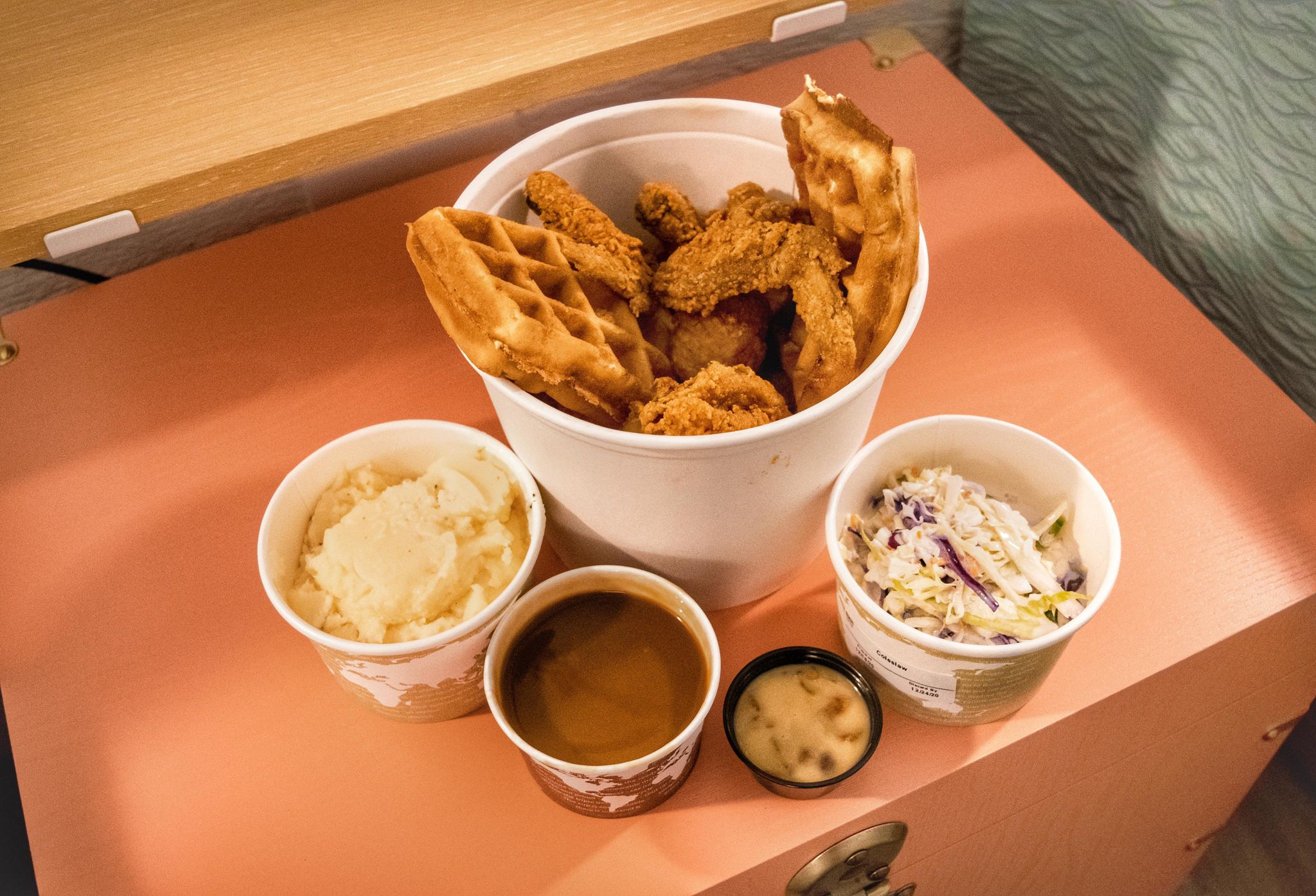 Surfside focuses more on lighter, fish-focused items while Dockside’s signature dish is fried chicken and waffles (a bucket that can be ordered to your room). The pizzas are surprisingly good, especially when you compare them to the foam insulation found at Disney. The burger we ordered was disappointing, the buns and toppings were fresh but the beef patty itself was limp and tasteless. The hit between the two menus is the fried chicken and waffles at Dockside, it is delicious.