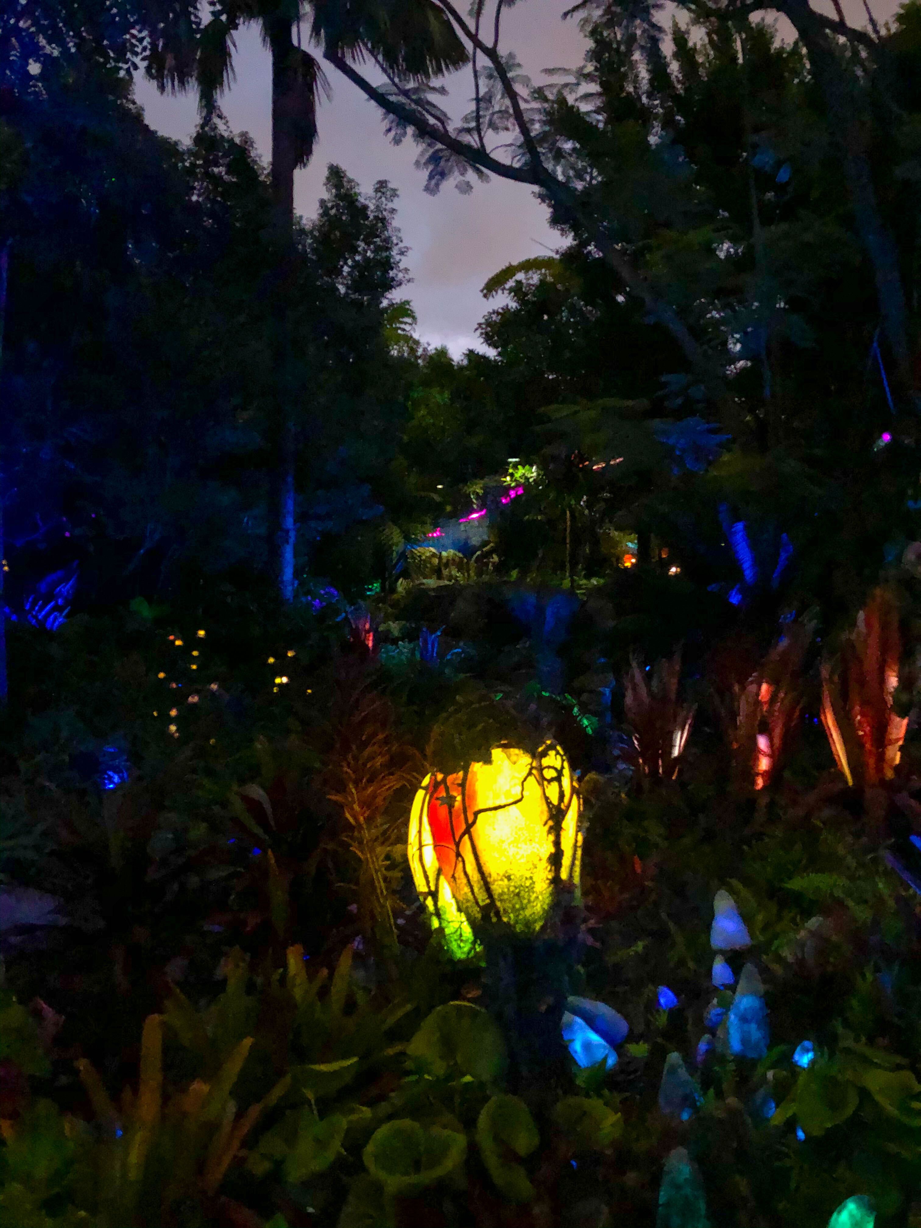 Another gift we received yesterday is the return of Pandora – World of Avatar, at night. With the time change yesterday, guests who visit during days with extended hours at Animal Kingdom (Fridays, Saturdays, and Sundays primarily) will be treated to the other worldly night setting offered at Pandora.
