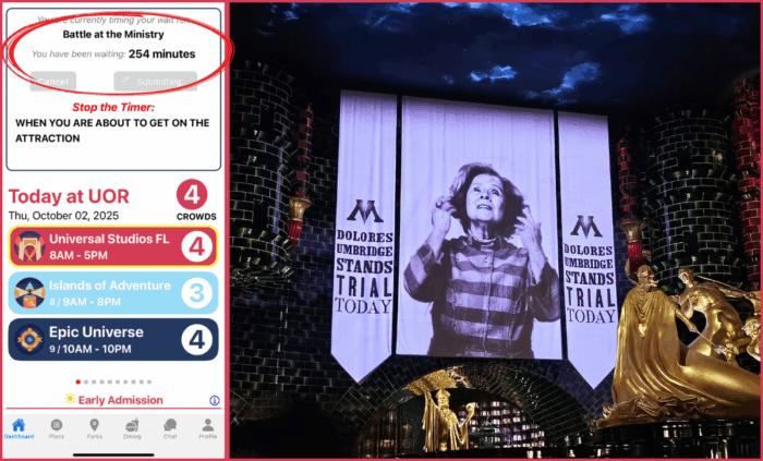 We’ve been testing Touring Plans at Epic Universe since they opened last May, and the one thing that kept tripping us up is Battle at the Ministry. Our plans have had our testers in line at varying times of the day, and test after test led us to three things that were making our waits for Ministry as long as 254 minutes.