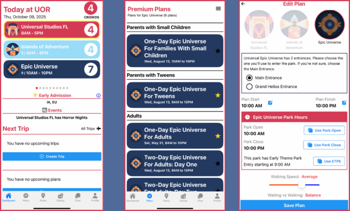 There is 1 free Touring Plan for Epic and 6 Premium Plans for subscribers. For this example, we’ll be using the One-Day Epic Universe for Adults Premium Plan.