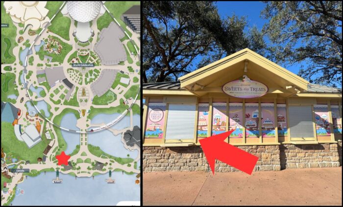 Step 3, Head to Sweets and Treats to claim your prize! Sweets and Treats is located at the entrance to World Showcase as shown on the map above. If you’re only there for the Cookie Stroll redemption, don’t get in line to the right of the kitchen. Instead, head straight for the redemption window with your completed Passport. A Cast Member will stamp the final space on the back page of your book and you’ll receive your free gift.