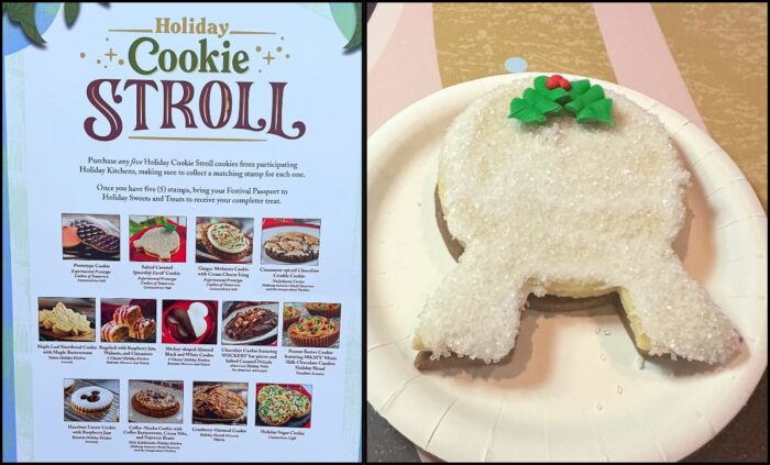 EPCOT’s Festival of the Holidays begins this Friday, November 28th, and runs through Tuesday, December 30th. One of our favorite events during this Festival is the Cookie Stroll! If you haven’t had a chance to participate before, the Cookie Stroll is a way to get a prize for eating cookies. You’ll need to purchase and get stamps for 5 qualifying cookies at the Festival to claim your prize. Here is how it works: