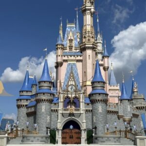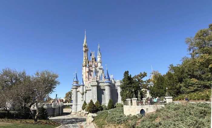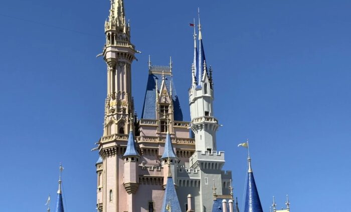 We dropped by the Magic Kingdom this morning to take advantage of the cloudless skies and snap new shots of Cinderella Castle’s ongoing transformation.