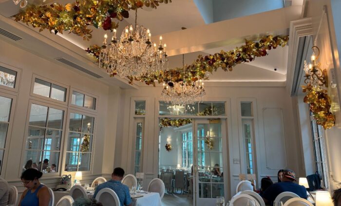 The white and gold exterior doesn’t clash with the Boardwalk’s vintage seaside vibe, but it does feel maybe a bit more formal than you would expect to see there. And I admit, when I first saw the concept art years ago, I was puzzled as it didn’t seem an obvious fit with the location. Once I stepped through the door, that was the “a-ha” moment. Disney World is about the themed experience as much – or more than – it is about riding thrilling roller coasters. This restaurant is a themed experience, and it is all in on what it offers.