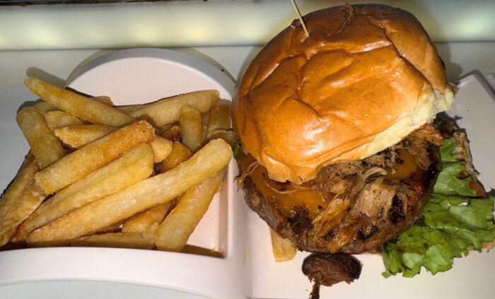There’s plenty of extra moisture from the BBQ Sauce (tangy and sweet with little bite) and the cheddar, but neither the pork nor the burger needed it. Would order again.