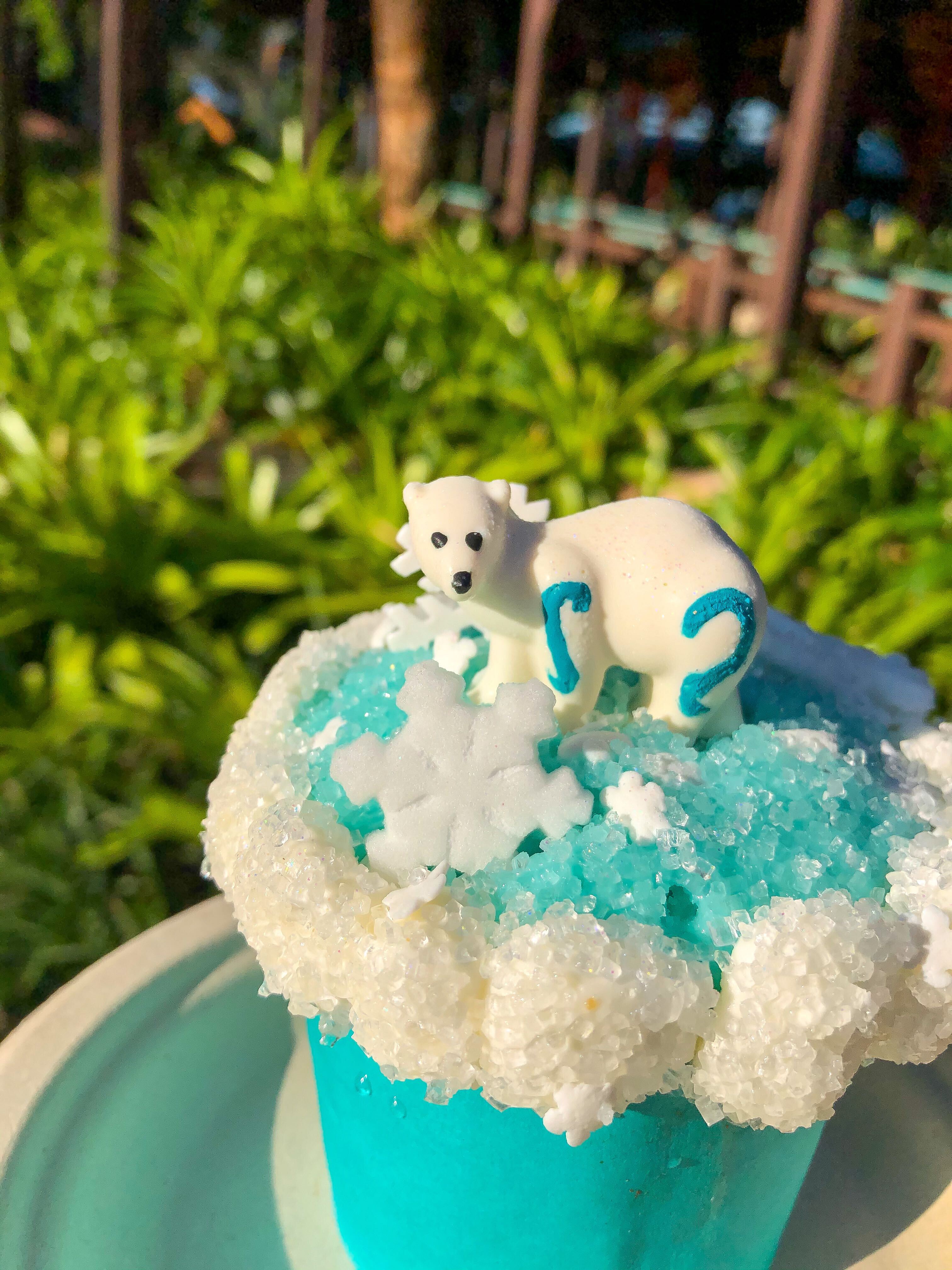 Last year saw the debut of lots of holiday enhancements to Animal Kingdom. While all the wonderful decorations throughout the park have returned, the Merry Menagerie entertainment has not. It is totally understandable, but it still saddens me because the interaction of the puppets and guests was heartwarming. Last year the Menagerie Cupcake debuted as part of the celebration, and it has returned this year.