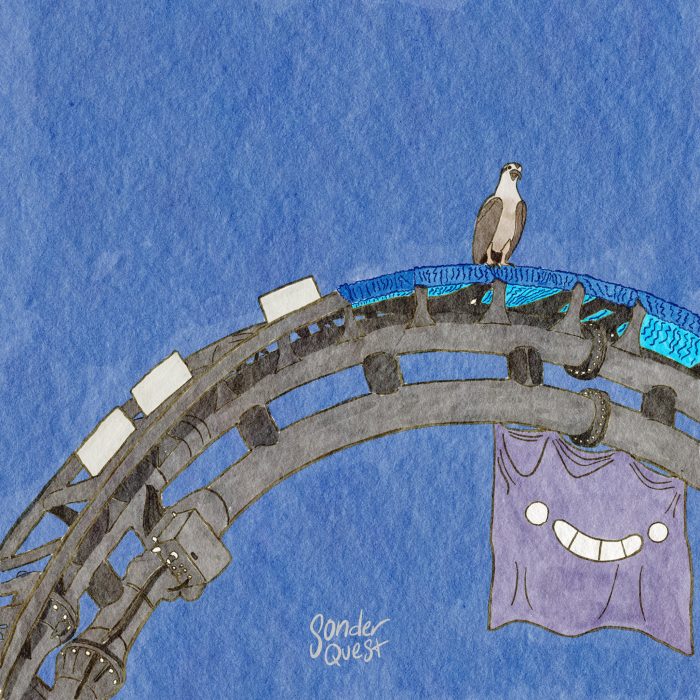 So here’s where we are at today. Universal has started testing for the Velocicoaster. What that means is – for guest safety reasons – they can’t put any more blue cling wrap on the track to deter ospreys. The coaster has been certified for operation and anything put on the track would force Universal to have to go through certification all over again. Right now the vehicle testing for the coaster is being done primarily at night. So the ospreys will start building a nest during the day, Universal removes the nest at night to test, and then we repeat the cycle. Soon, Universal will begin to test the Velocicoaster during the day, and we can safely assume the ospreys will voluntarily move at that point.