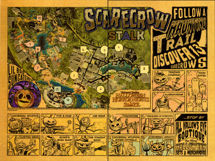 One thing that my family has enjoyed over the years at EPCOT are the scavenger hunts during the festivals such as Figment’s Brush with the Masters for the previously mentioned Festival of the Arts, or Spike’s Pollen-Nation Exploration during Flower & Garden. Universal began having their own version of these scavenger hunts several years ago. Scarecrow Stalk (a great name if there every was one) sends guests across both Universal parks and CityWalk to discover unique and highly themed scarecrows at various gift shops.