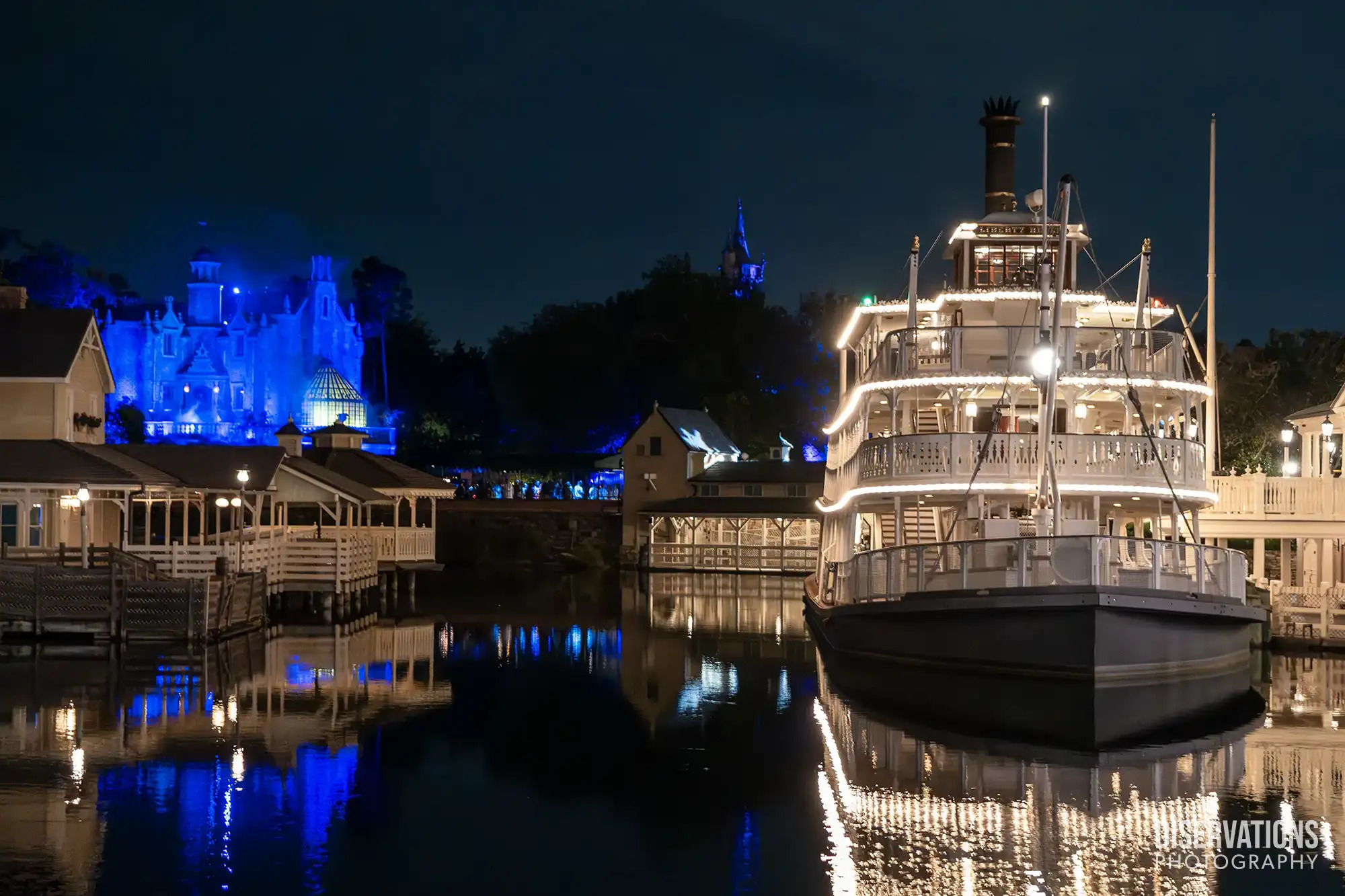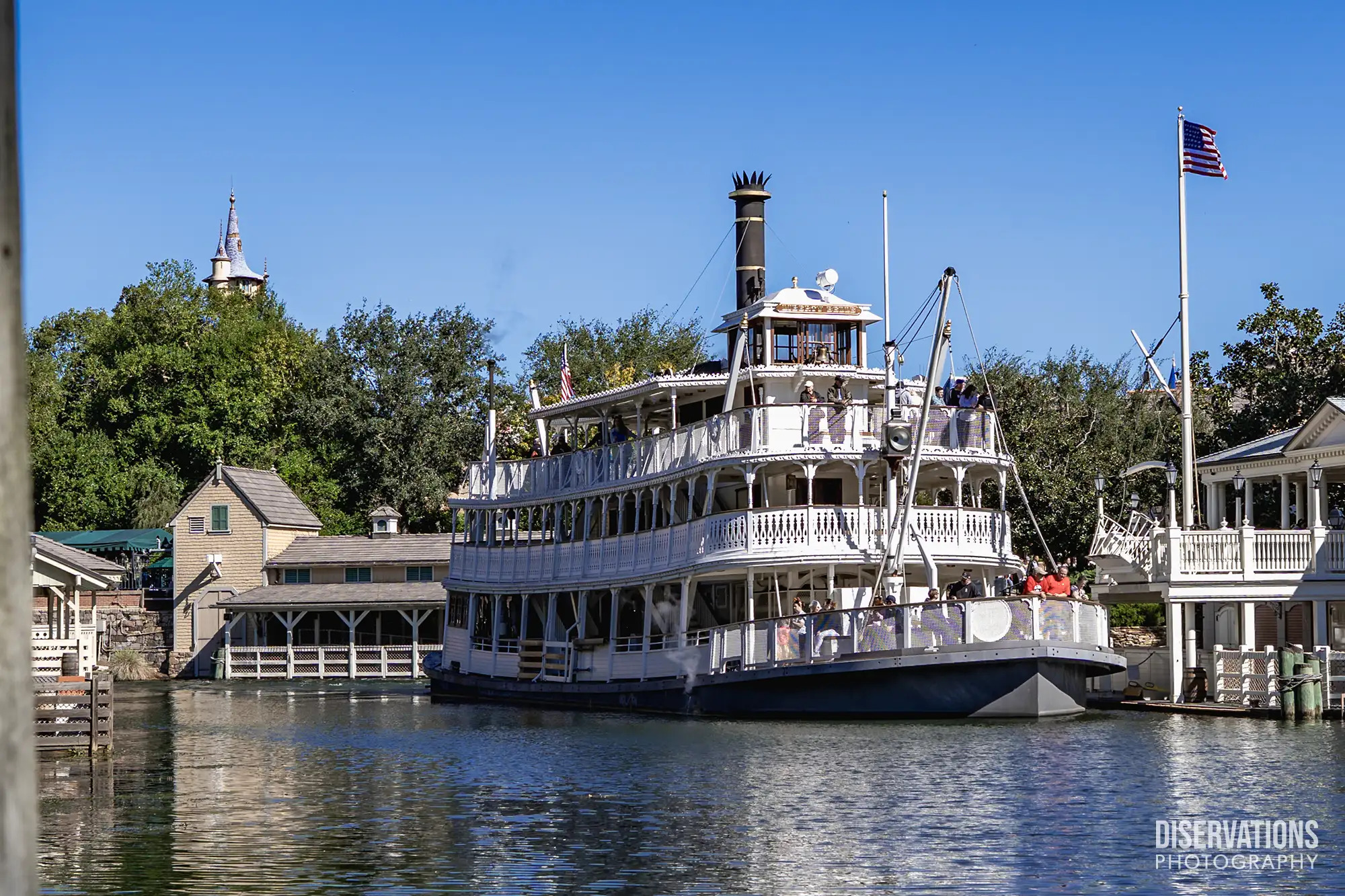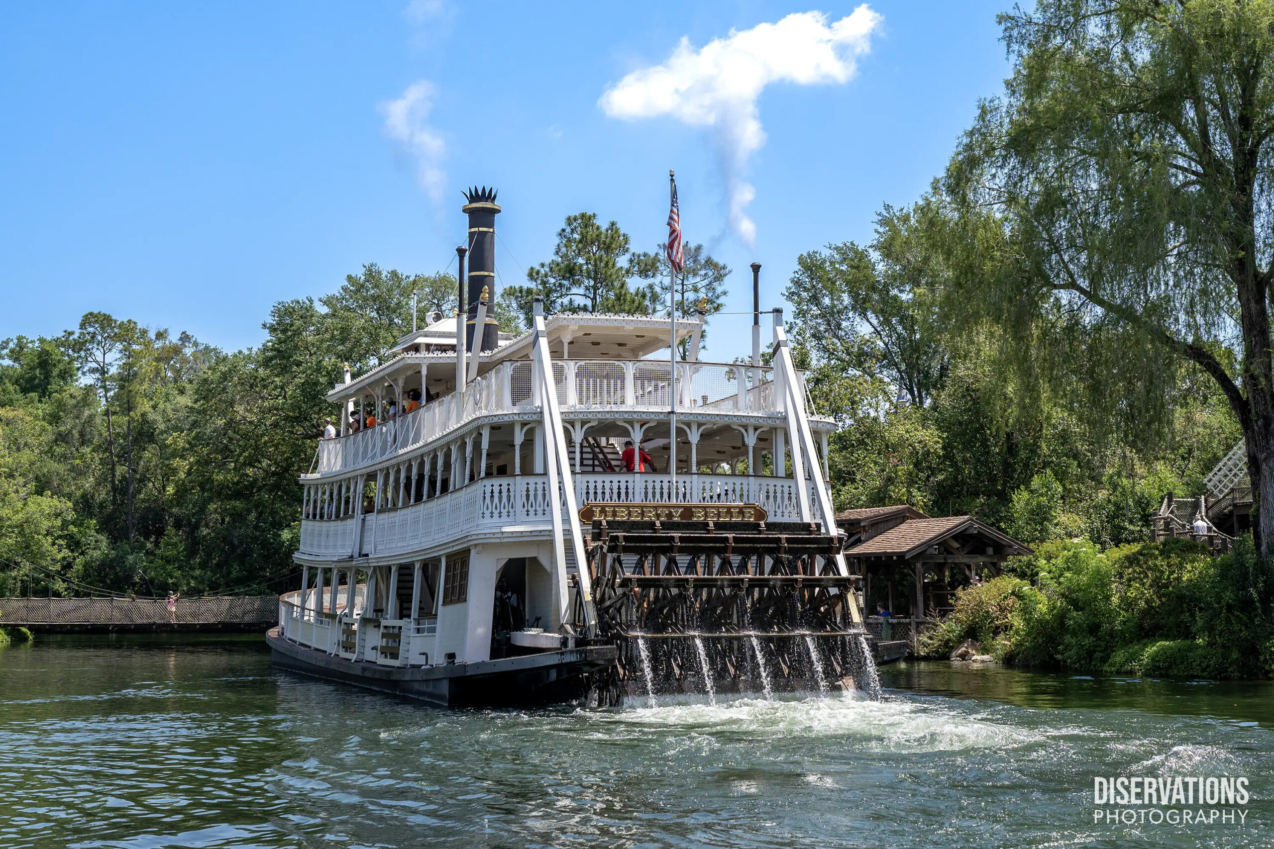 Sitting on the Rivers of America was the iconic Liberty Square Riverboat, named the Liberty Belle.
