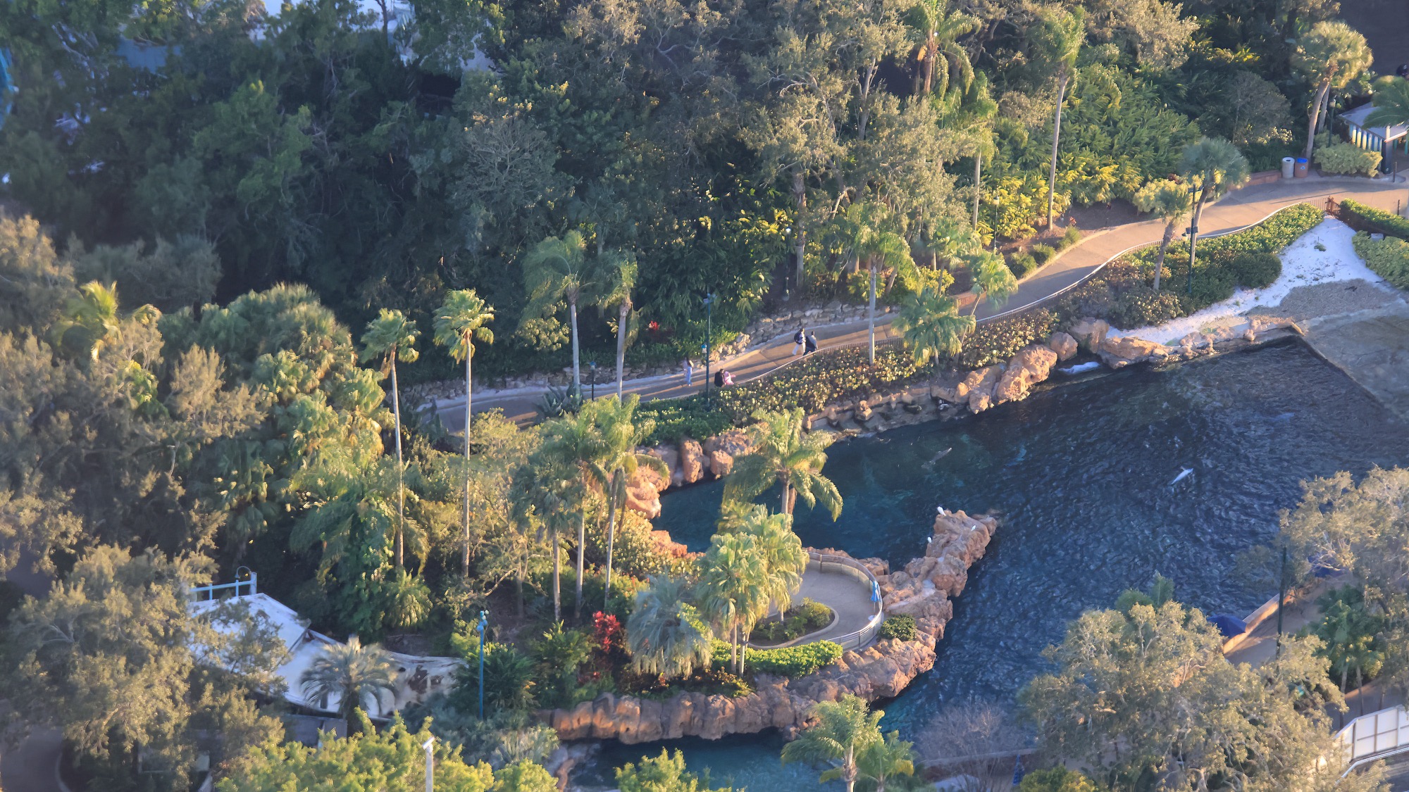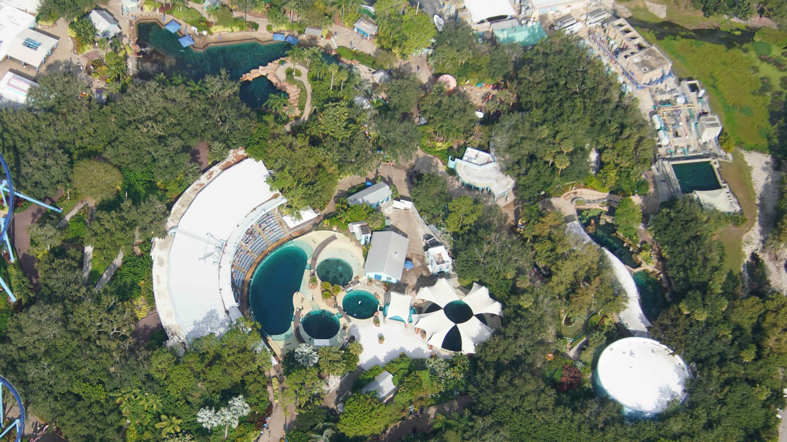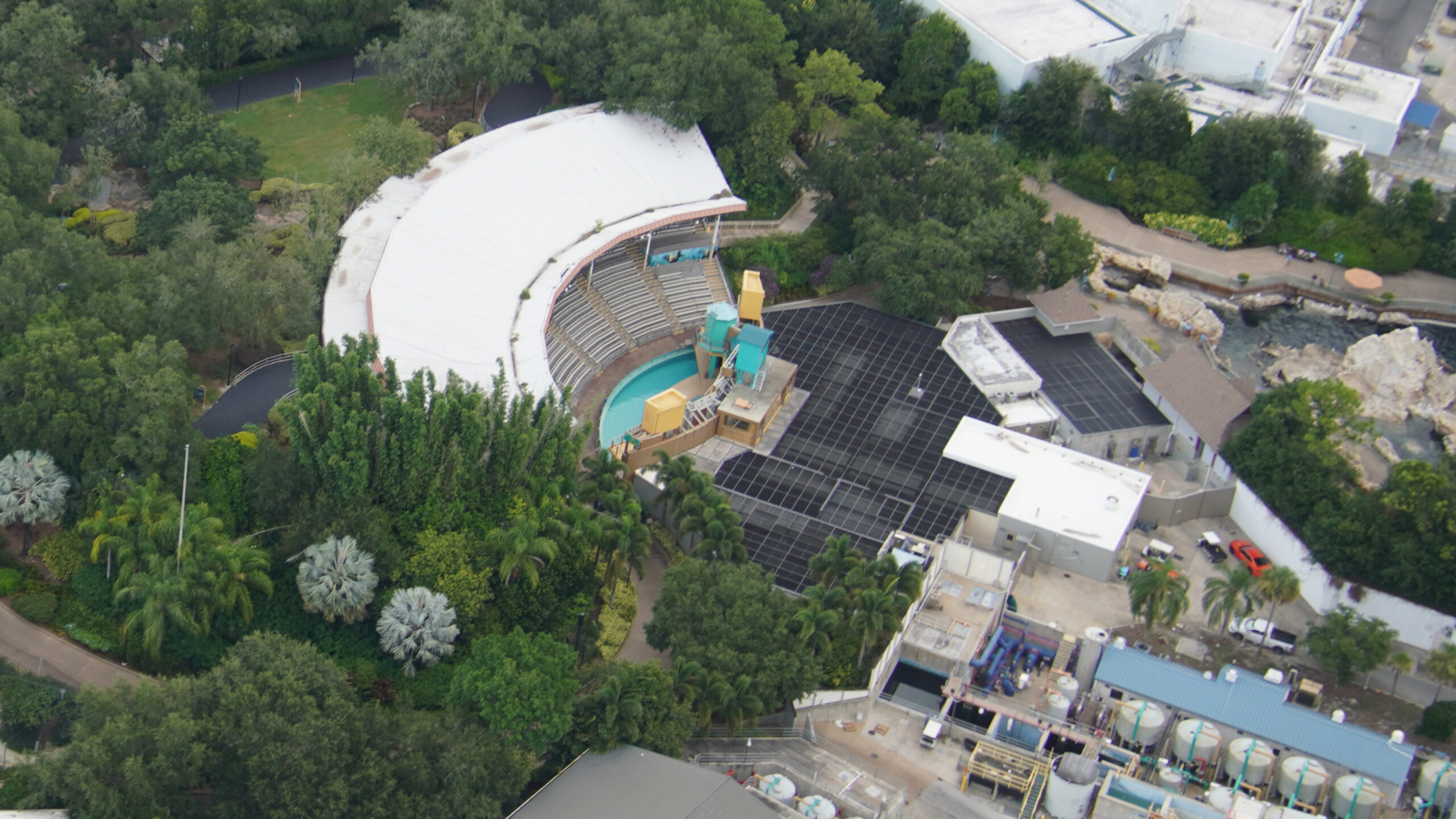 A more direct view straight down of the Dolphin Theater gives a better look at the nearby areas for dolphins and manatees.