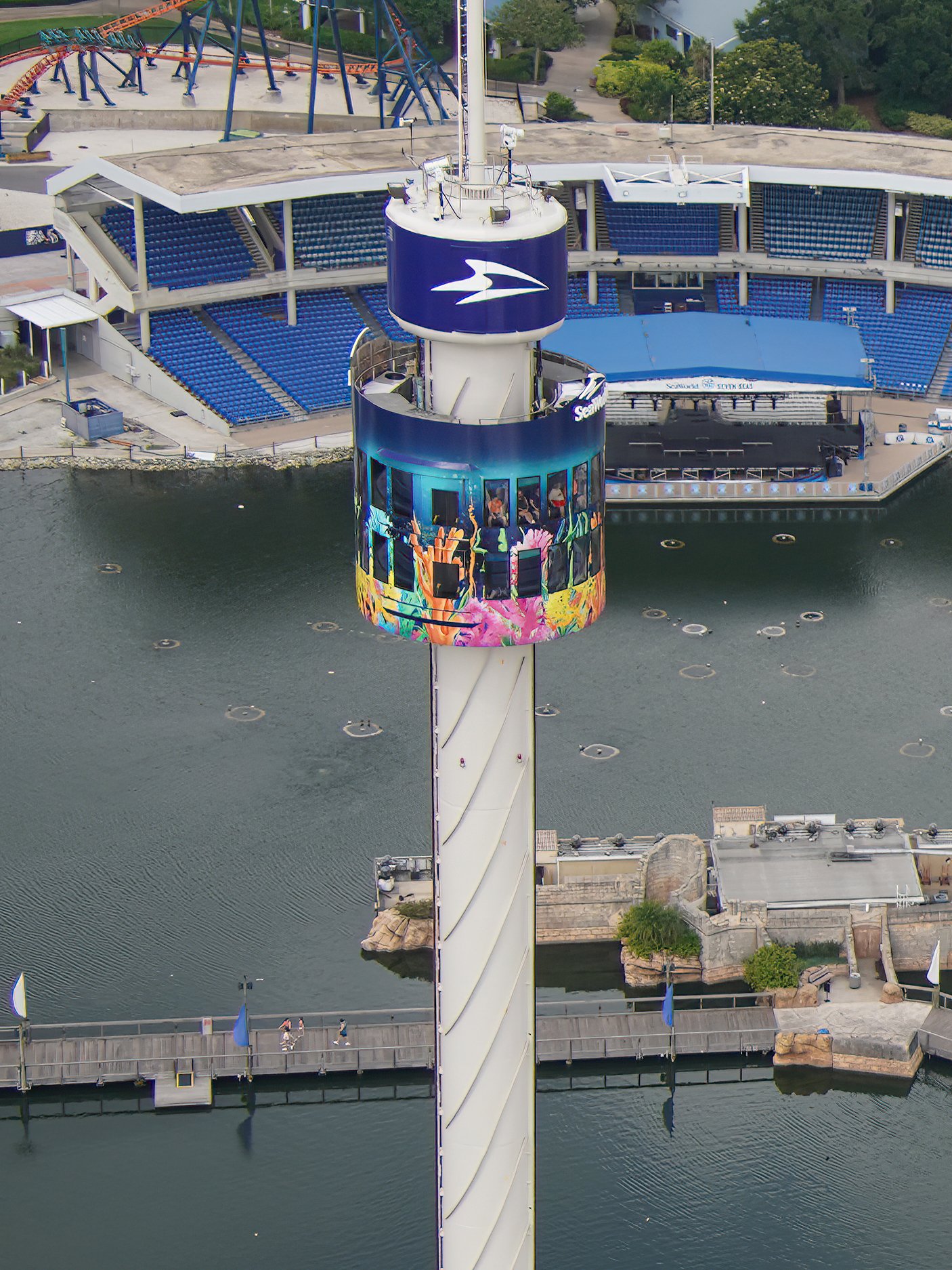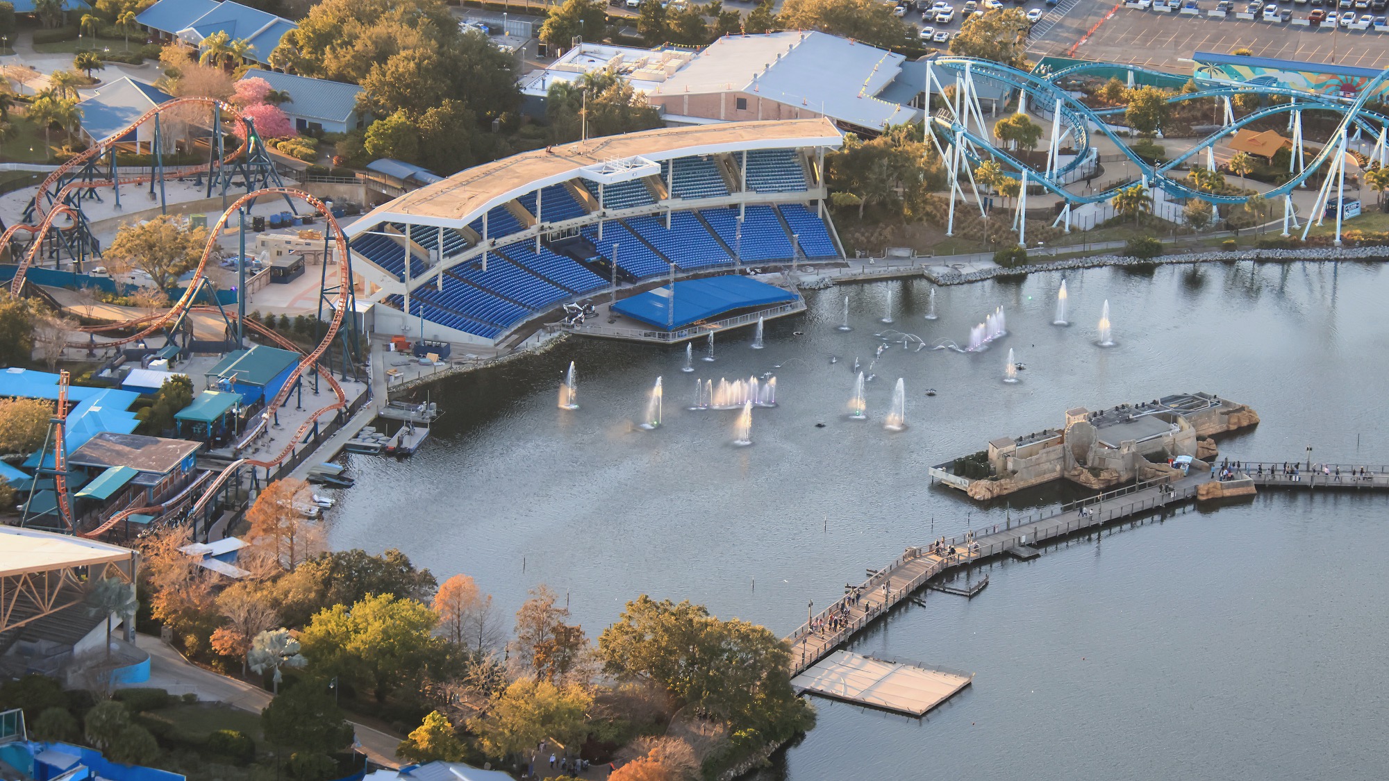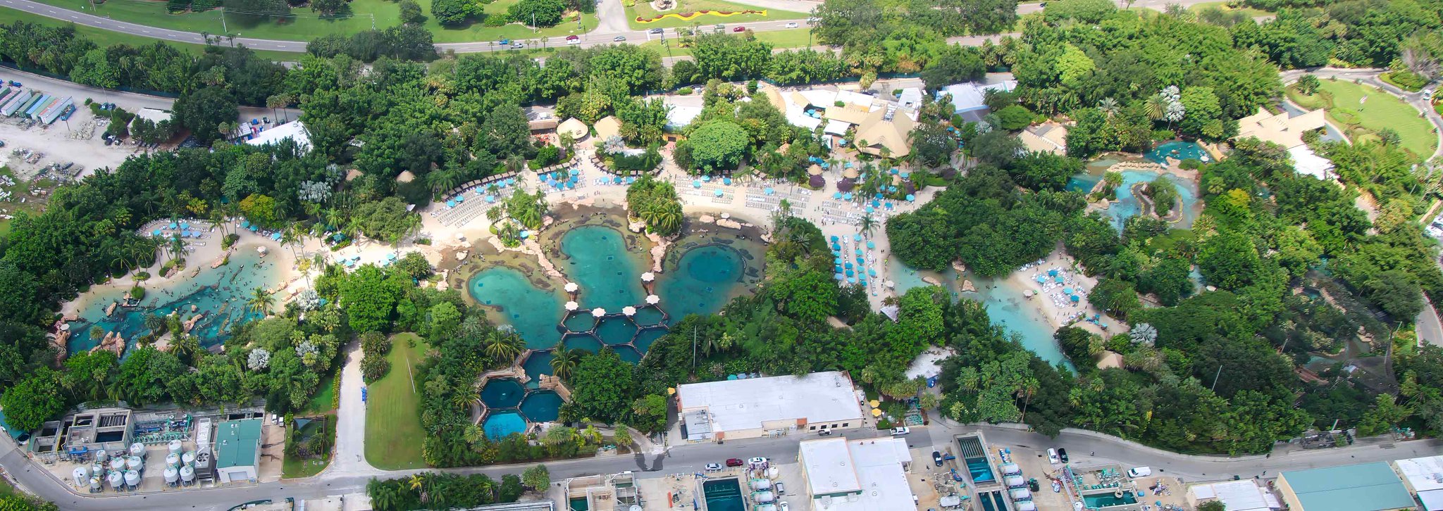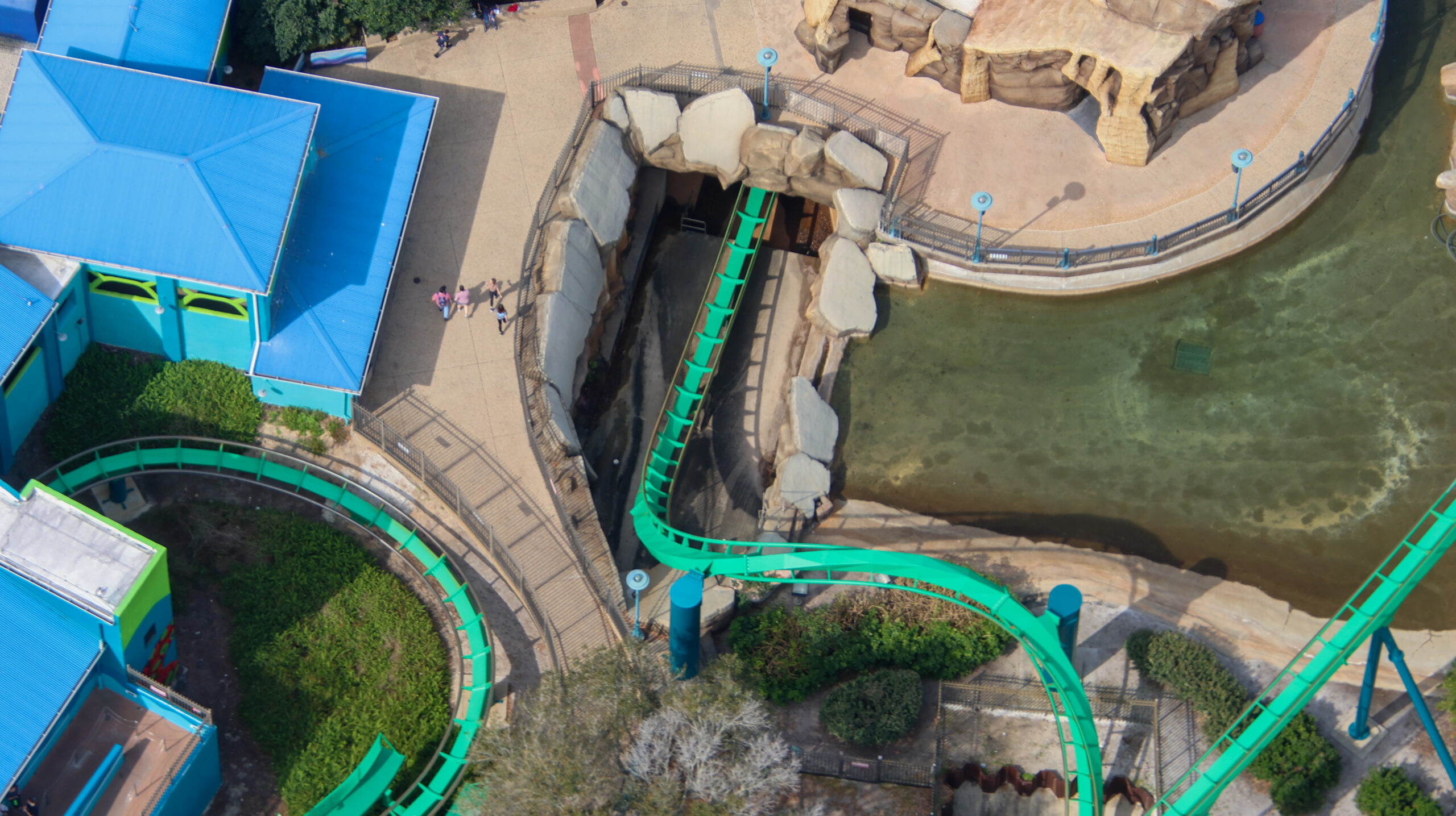 A more direct view straight down of the Dolphin Theater gives a better look at the nearby areas for dolphins and manatees.