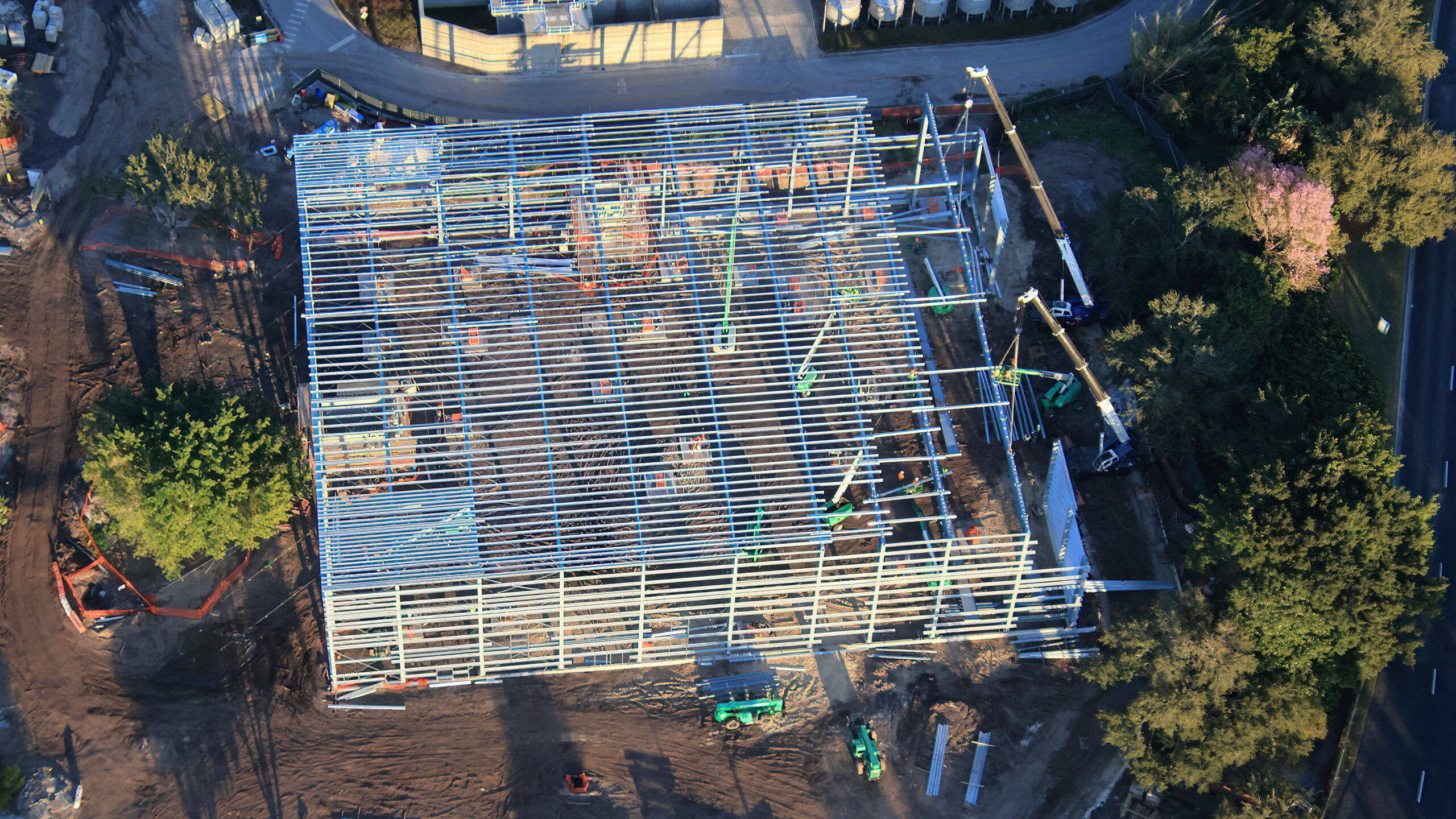 We’ll finish up with some photos taken this past week, showing the structural frame of the show building almost at completion.