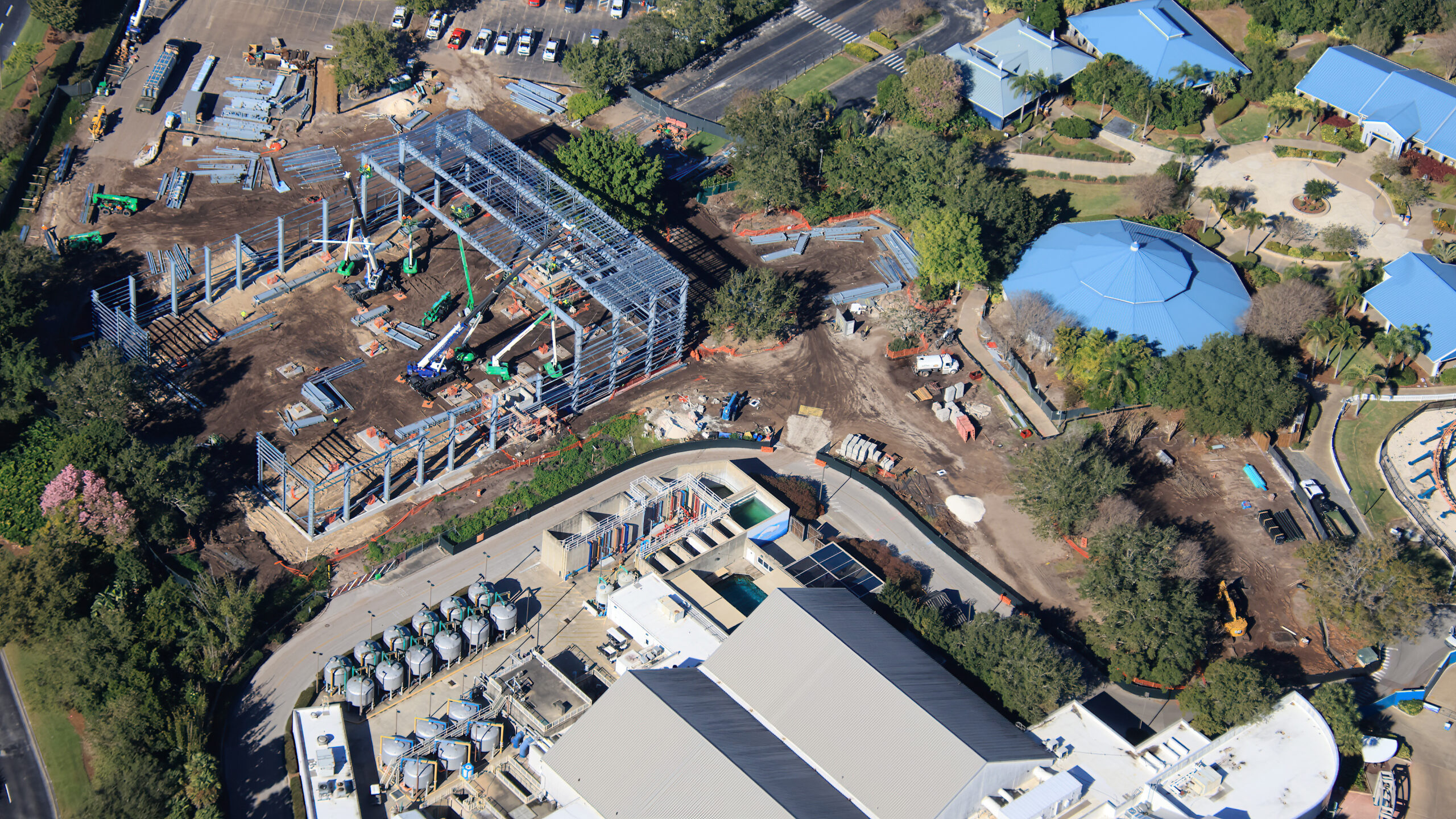 Bio is well known for his “bell to bell” photo coverage of the construction of Universal’s Epic Universe along with his current photo essays following the current development of Piston Peak at Disney’s Magic Kingdom, Tropical Americas at Animal Kingdom, and the Fast and Furious – Hollywood Drift coaster at Universal Studios Florida. Well, he also covers all the recent projects at SeaWorld Orlando, including the current construction of SeaQuest: Legends of the Deep. Let’s step into the wayback machine and go to September of 2025 as Bio’s aerial coverage showed SeaWorld preparing the land for their recently announced attraction.