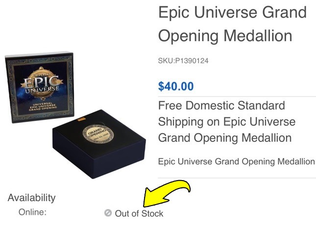HONORABLE MENTION – That Time Universal Sold Out of Grand Opening Medallions BEFORE The Grand Opening