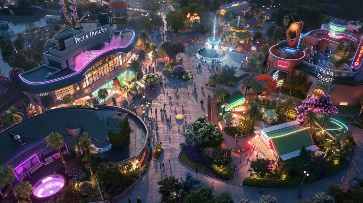 The concept art gives no actual reason for anyone to actually want to go to any of these theme parks, and much of it seems to be AI generated because it has no basis in reality. Look at the “roller coaster” in the top right of the concept art below. There’s multiple issues with it, but are we to believe guests will be riding upside down on long straight sections of the track?
