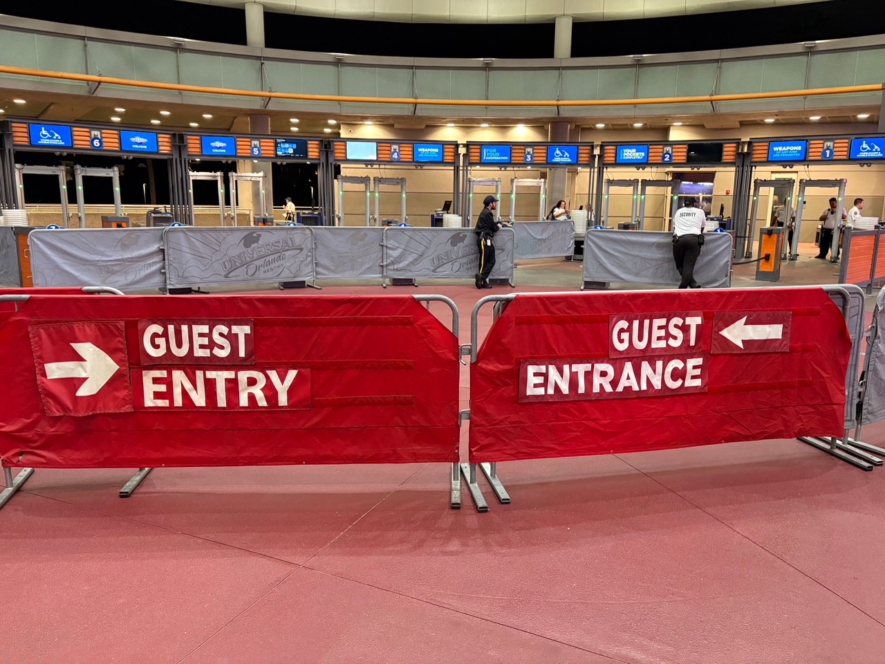 Over at the main campus of the Universal Orlando Resort, signage couldn’t be more clear at the security hub in CityWalk.