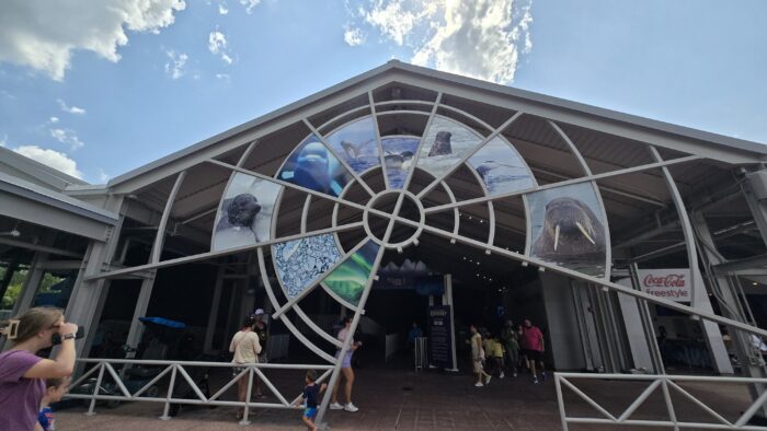 A closer look at the letter when being carried away by a SeaWorld Team Member shows that it seems a bit flimsy and appeared to be made out of foam. The opening of Odyssey was already delayed from April, so there’s a good chance that this signage was a rush job just to get something up on the marquee.