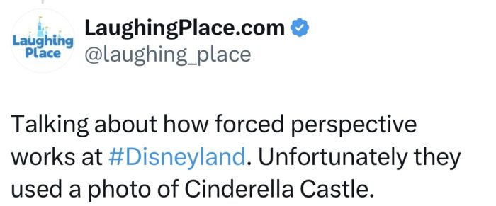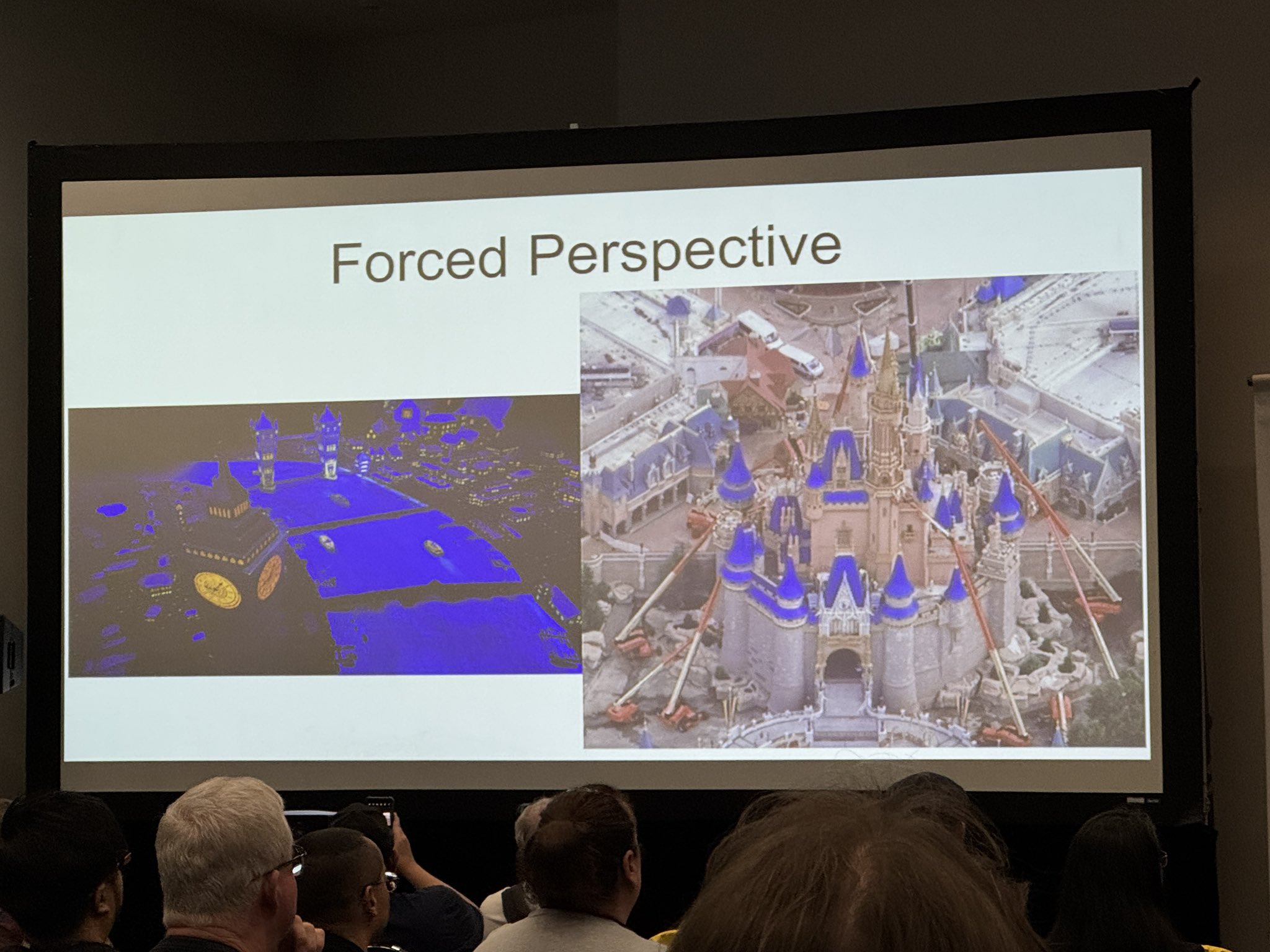 The website LaughingPlace covered the panel, and noticed that when the group was discussing using forced perspective at Disneyland they were actually looking at a picture taken at Walt Disney World.