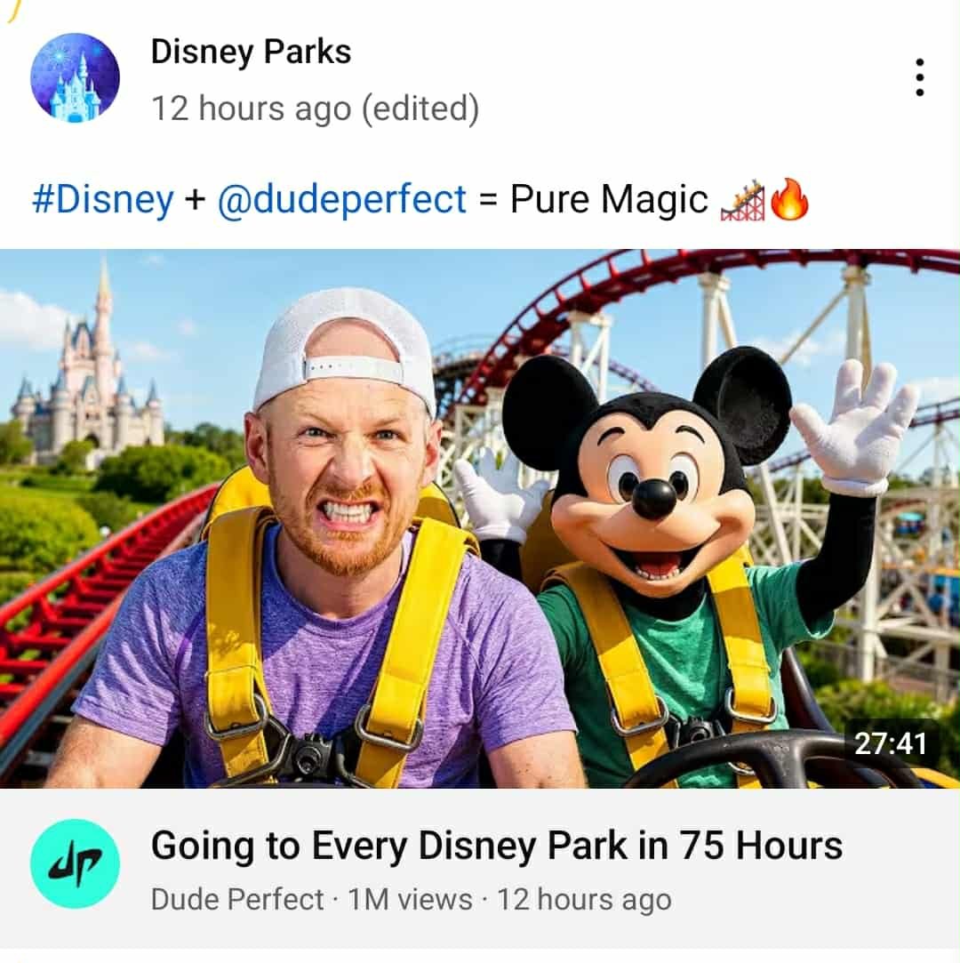 The mega popular YouTube channel Dude Perfect did a gimmick over this past summer where they promoted the fact that they went to every Disney park around the globe in under 75 hours. This is important because the previous record was held by Lindsay Nemeth, who back in 2017 visited all 12 parks around the world in 75 hours and 6 minutes. As theme park fans, if you watch Dude Perfect’s video and do the math in your head, there’s no way they did what they said unless Disney helped along the way (which has been confirmed) and maybe fudged their timeline a bit as well. You can see a thread that debunks the timeline of their video by CLICKING HERE.