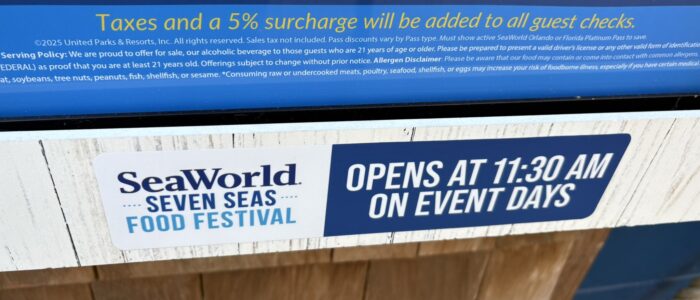 Not at SeaWorld though. NAY NAY. SeaWorld doubled down. Where they once had a 5% surcharge added to all orders, earlier this year they went UP to a 9% added surcharge during their annual Seven Seas Food Festival.