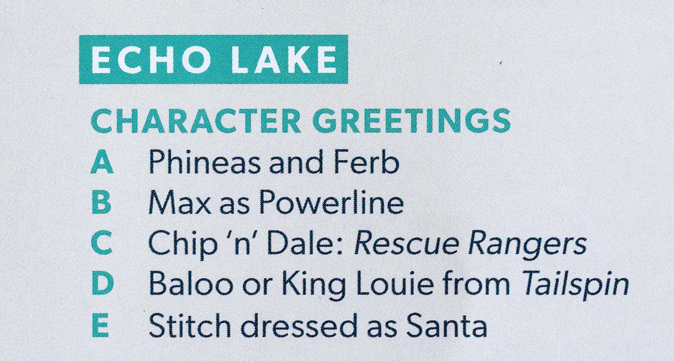 In the character greeting section, we see “Baloo or King Louie from Tailspin.”