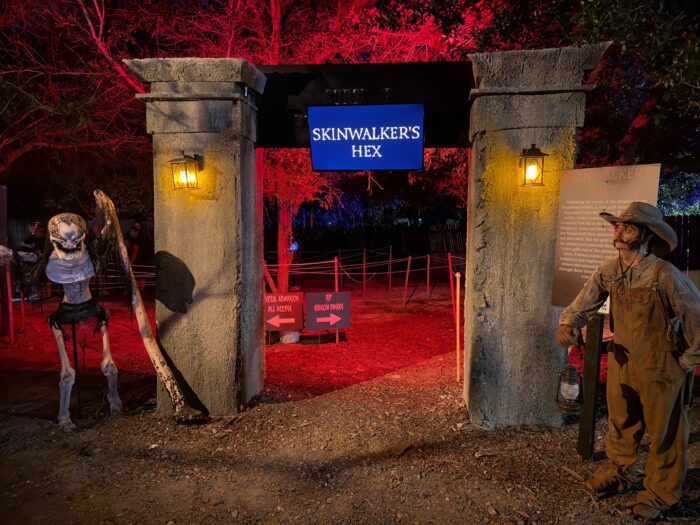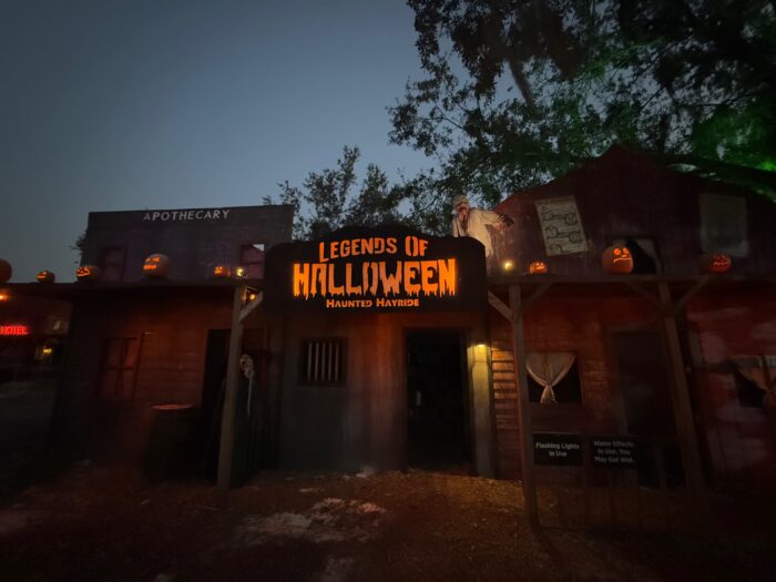 Sir Henry’s is home to three haunted trails, the Legends of Halloween haunted hayride, a Sir Henry’s “Swag” shop, and other experiences such as escape rooms. The three trails this year are Skinwalker’s Hex, Ravensgate Asylum, and City of Slaughter. Super fun, lots of scares (we definitely jumped a lot), and unlike the houses at HHN, they use their own voices.