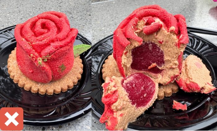 Enchanted Rose, $6.50 – this Milk Chocolate Rose has a delicious Raspberry and Rose Center, but this dessert has gone the way of the dome cake. There are lots of these types of molded mousse concoctions around the parks (especially Amorette’s at Disney Springs) and I’d be happy to see them disappear. While lovely, the mousse is wet and boring. There are so many other sweet treats at this festival that deserve our dollars.