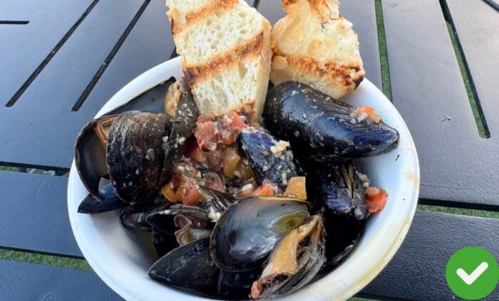 Cast Iron-roasted P.E.I. Mussels, $8.00 in 2024, 2025, and 2026- This is the second of my two most favorite dishes from this festival. I look forward to seeing the giant cauldron of mussels, tomatoes, garlic, and herbs as I approach this kitchen each year. The Cast Members behind the grill are the culinary equivalent of the pyro team in the Magic Kingdom. Skilled, confident, and far beyond an average human with a fire proof hand mitt. Nary a mussel has been overcooked nor a grilled bread singed too far as long as I have been witness to their skills. The pot liquor, though. Please linger over the puddle of golden liquid that will be waiting when you’ve consumed the mussels and are contemplating a second bowl. Now is the time for the bread to shine. One of our pals on Instagram, Amy M., suggested stopping at Les Halles in the France Pavilion for a half baguette and I think she and I have just become besties.