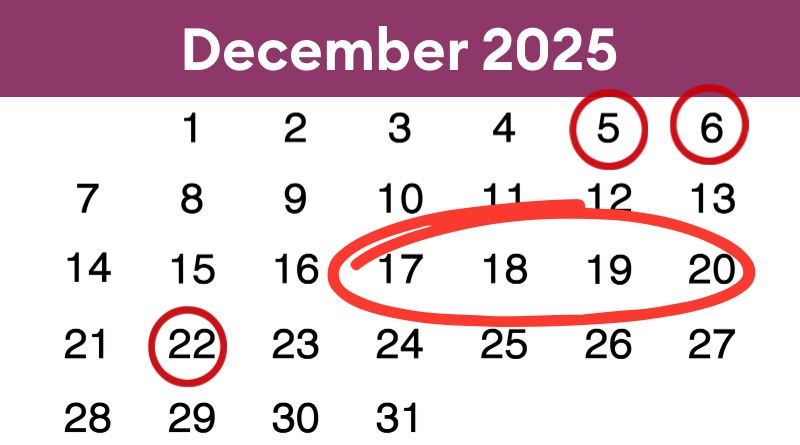 December is a busy month for everyone! Check out some of the things we’ll be doing as we march toward the end of the year.