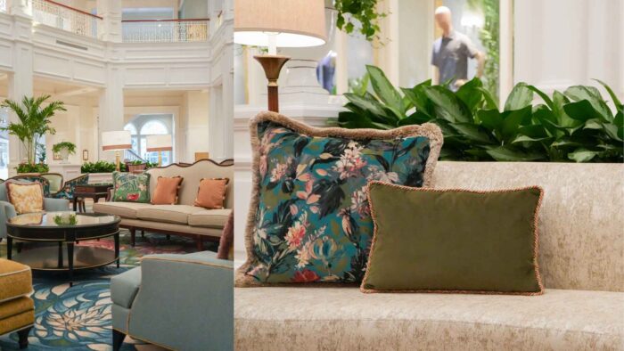 There’s ‘perch’ seating at the lobby bar, but of course you can take your drink to relax on some of the new seating that guests will find in the redone lobby area. Look for the “language of flowers” in the furnishings and carpet throughout the newly redone flagship lobby.