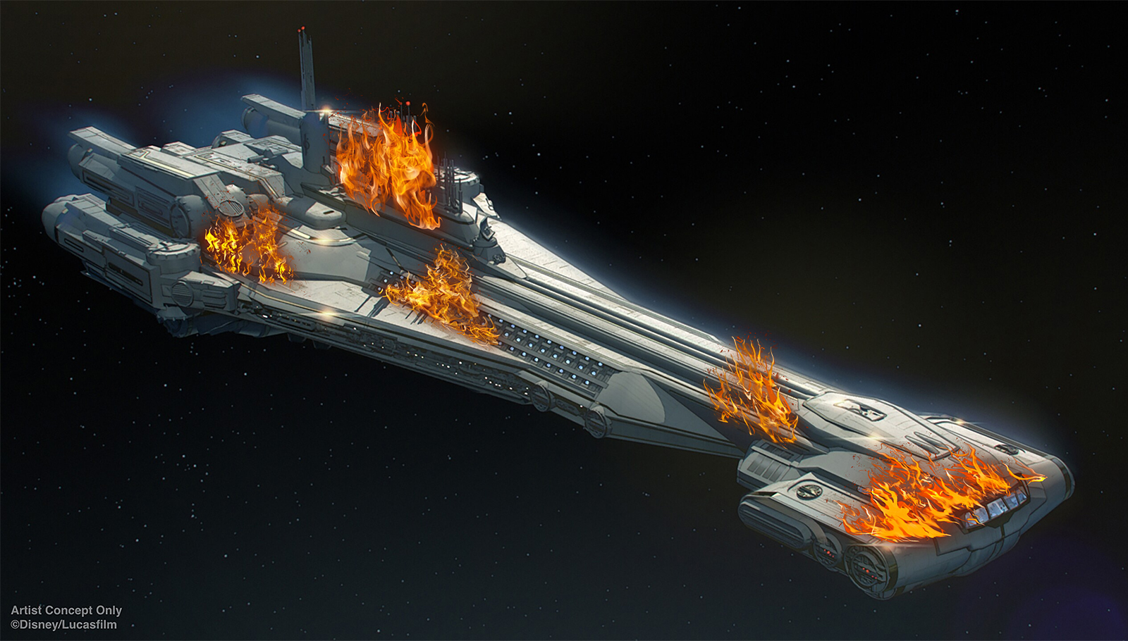 The introduction of Star Wars: Galaxy’s Edge in 2019 took it to the next level, as fans didn’t just get a Star Wars ride, NAY NAY, they got an entire land. The land itself was the planet Batuu, and both attractions send guests into outer space. The most memorable is Rise of the Resistance, which has another one of those patented “wow” moments when guests get this reveal on the hanger of a First Order ship…
